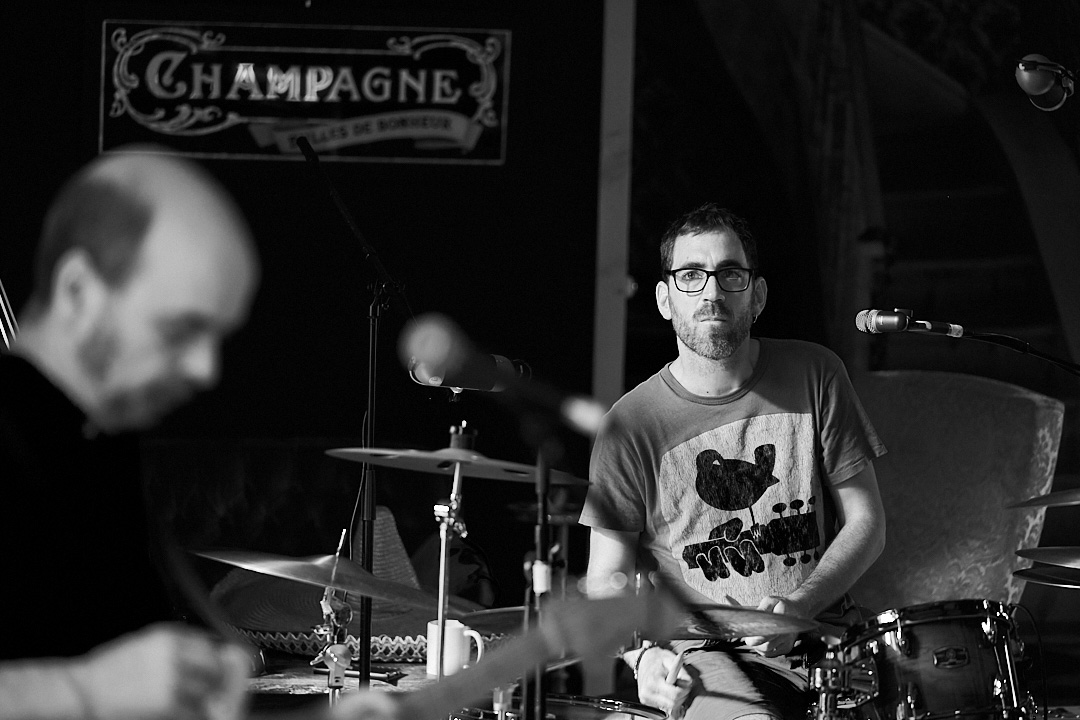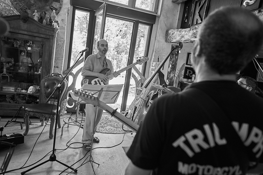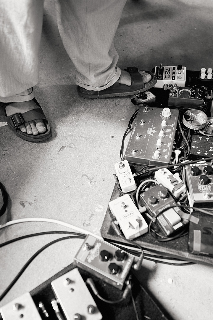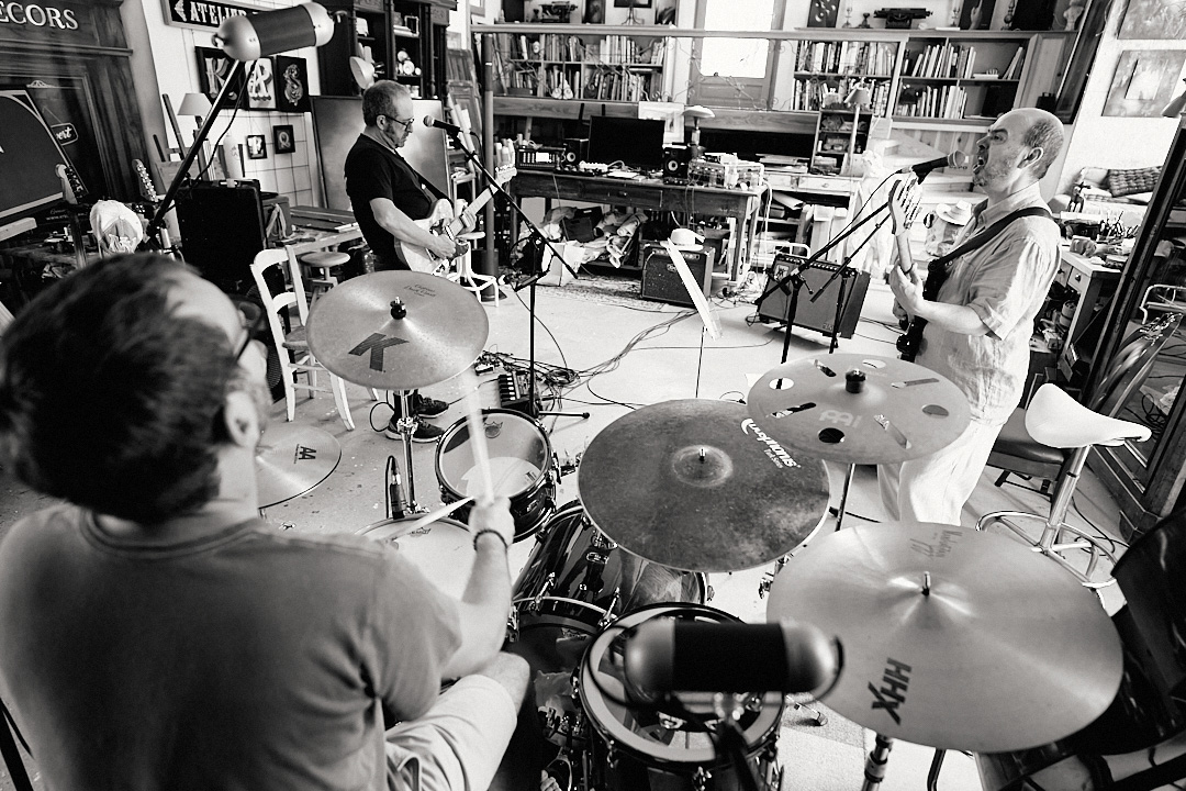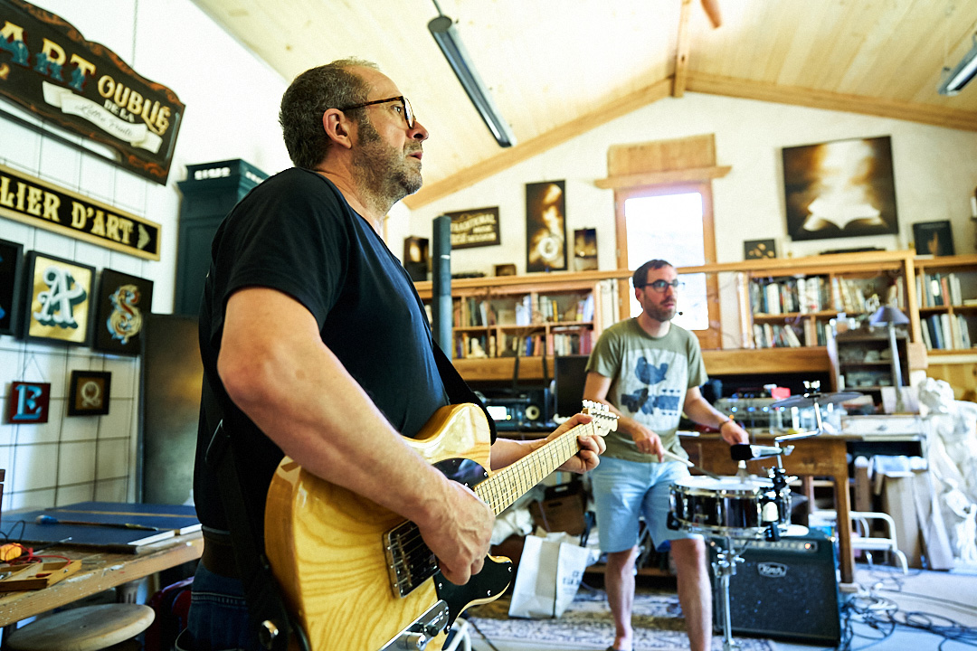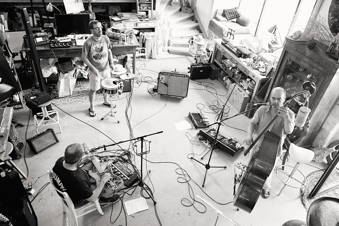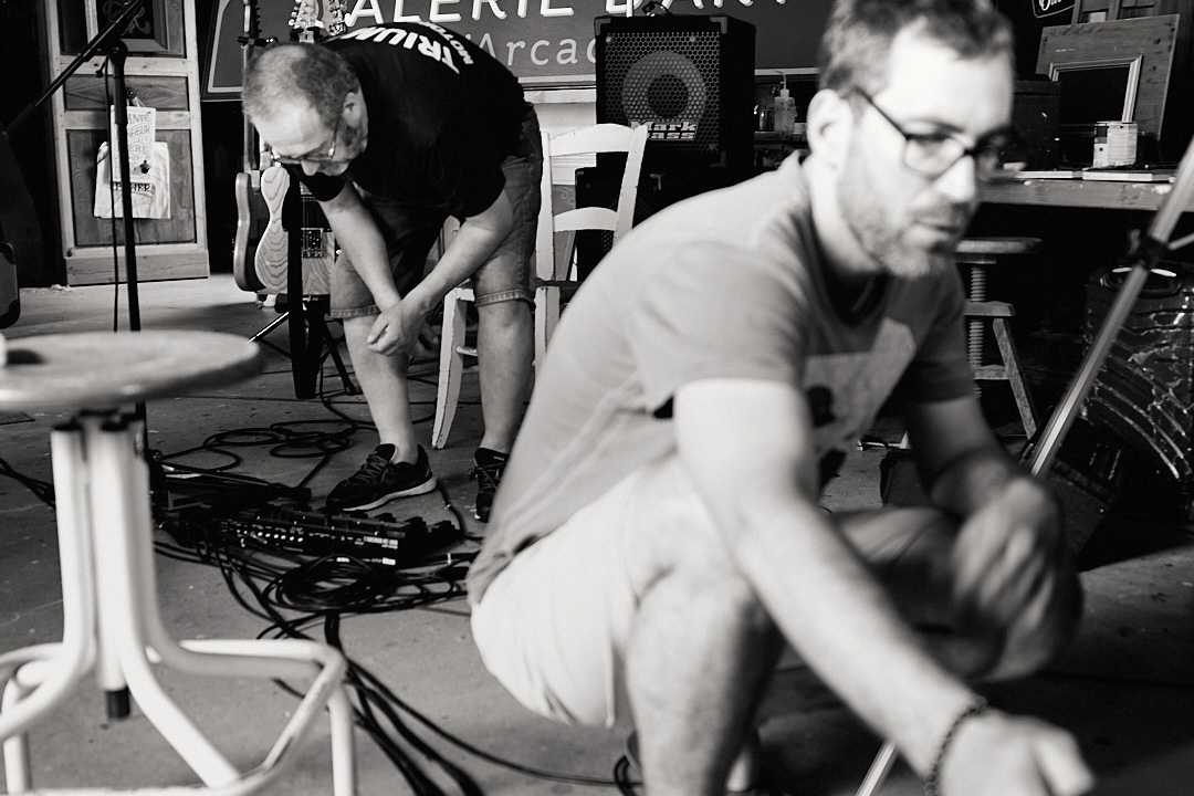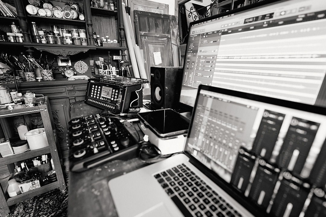Pour Café Sofia Presents: the iUteurki’Verse, nous nous sommes installés dans l’atelier de peinture de Geno, transformé en studio d’enregistrement multipiste. Pendant quatre jours, nous avons répété trois sets complets pour le spectacle. Mon ami James Foster, photographe originaire de Chicago, est venu documenter l’aventure. Ce sont ses photos qui composent les galeries présentées ici.