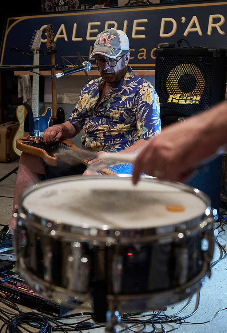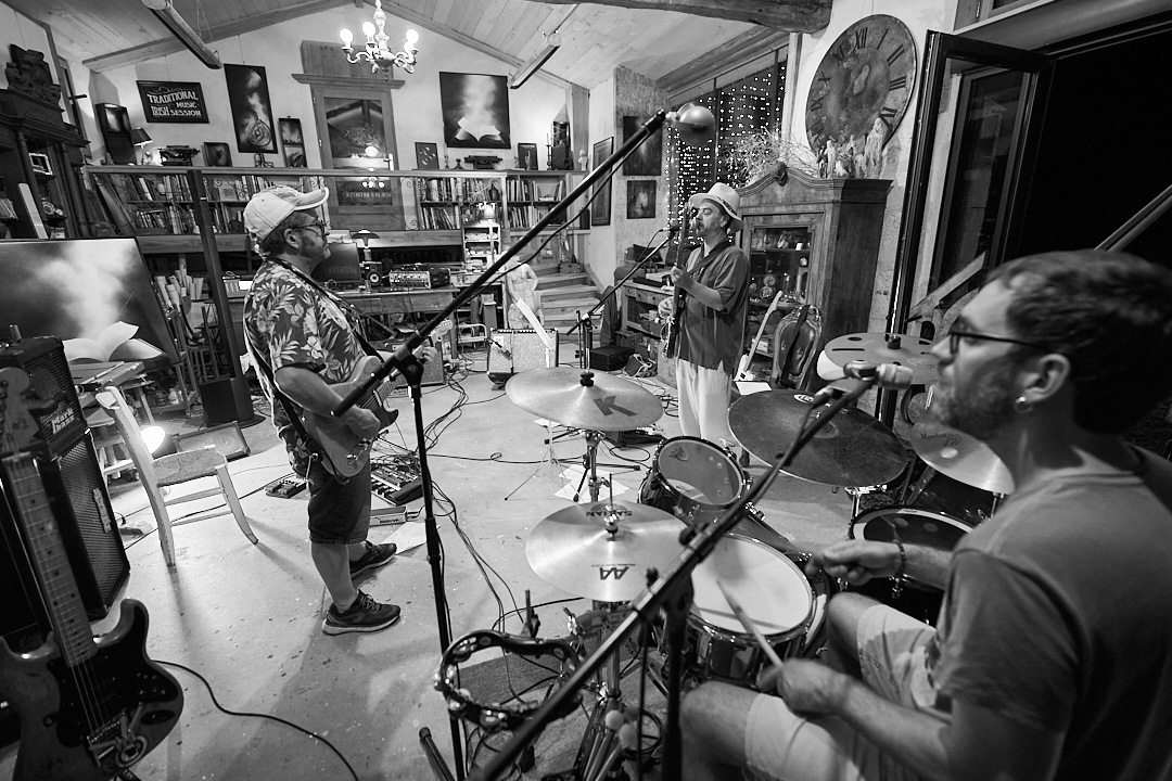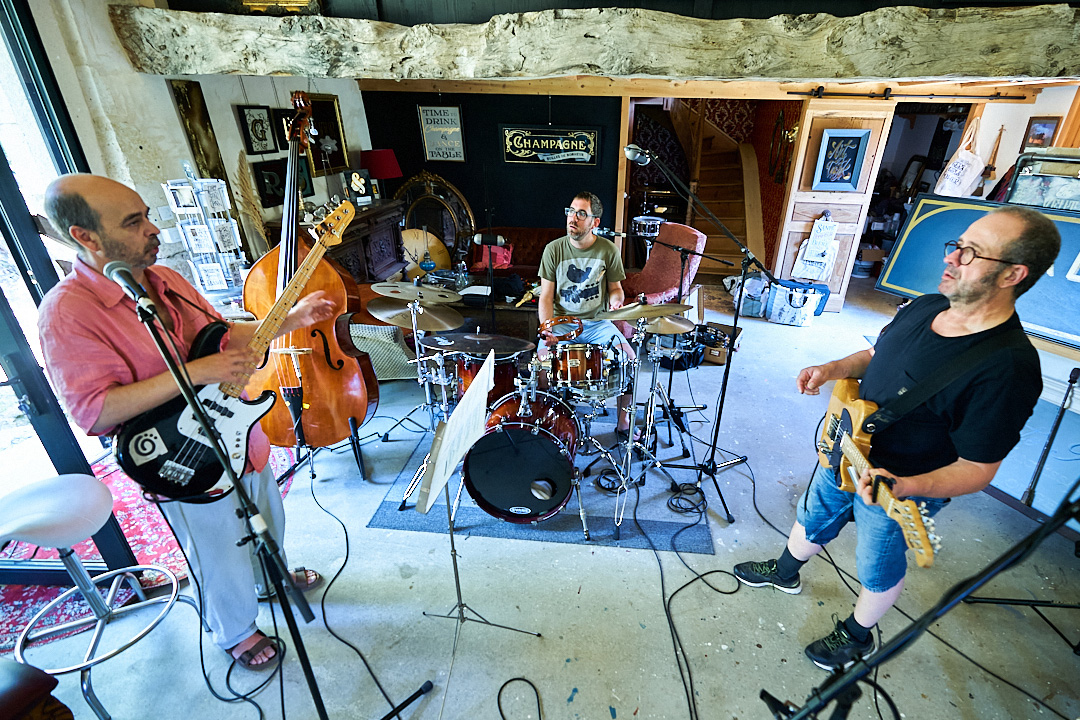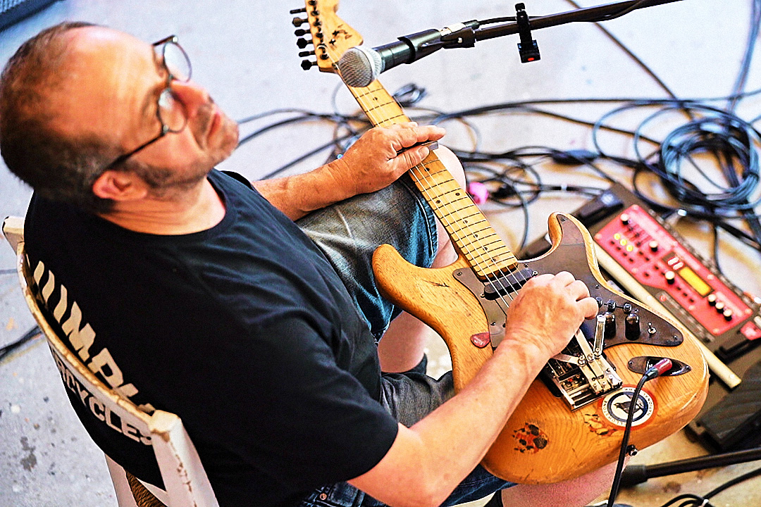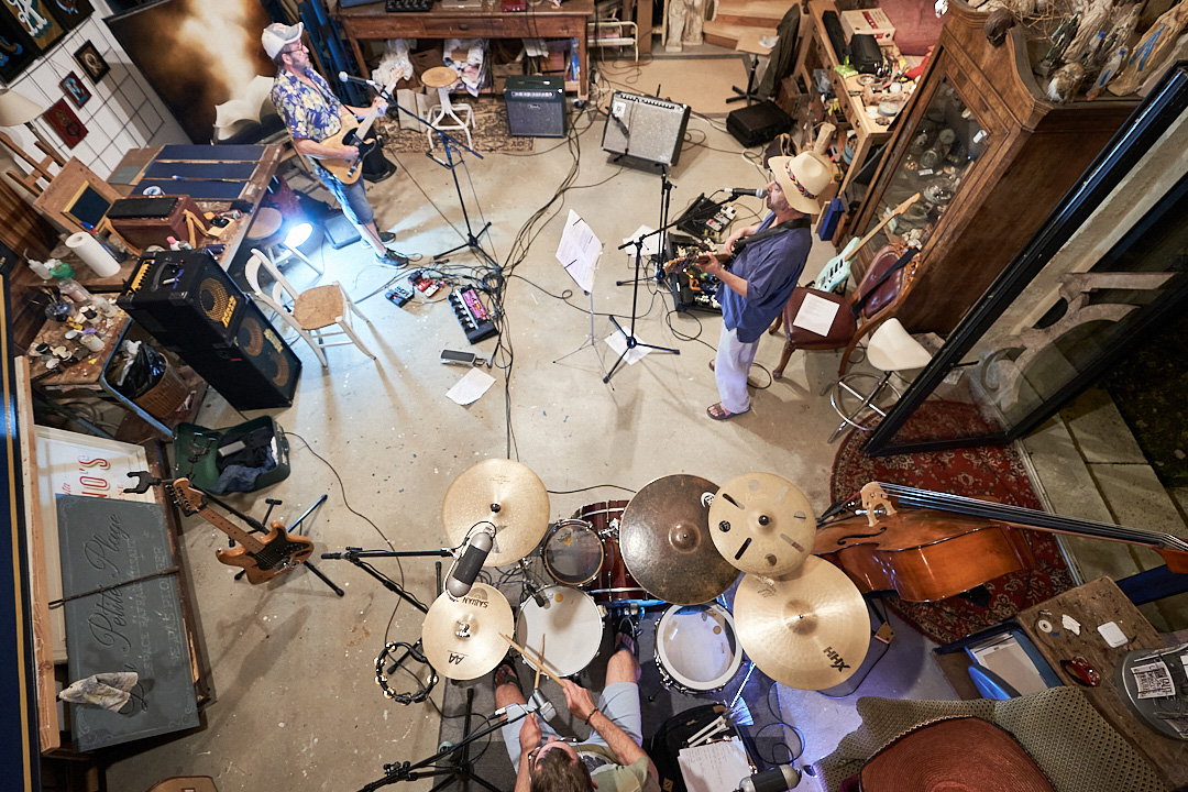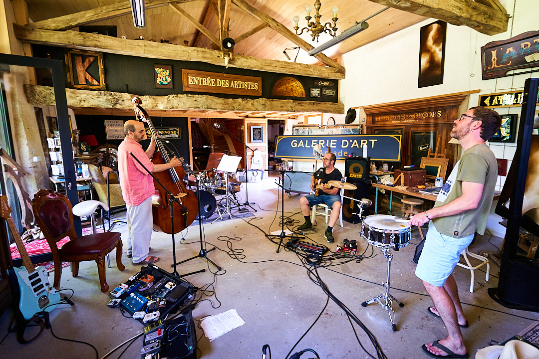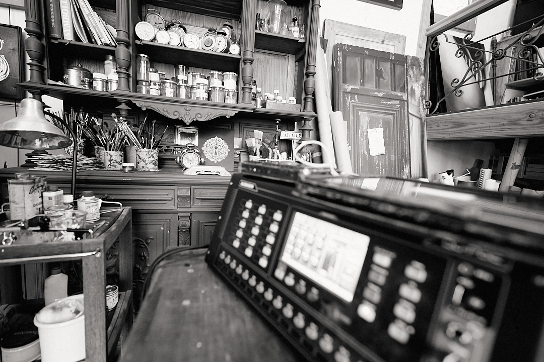Pour Café Sofia Presents: the iUteurki’Verse, nous nous sommes installés dans l’atelier de peinture de Geno, transformé en studio d’enregistrement multipiste. Pendant quatre jours, nous avons répété trois sets complets pour le spectacle. Mon ami James Foster, photographe originaire de Chicago, est venu documenter l’aventure. Ce sont ses photos qui composent les galeries présentées ici.