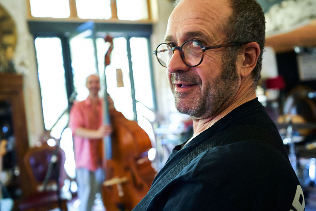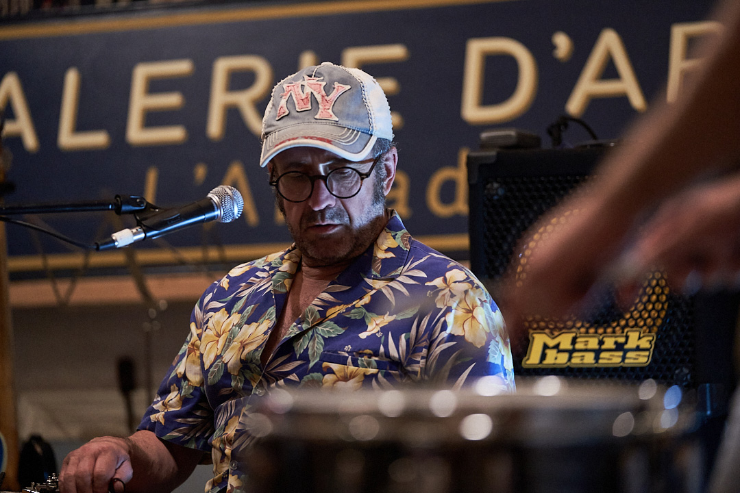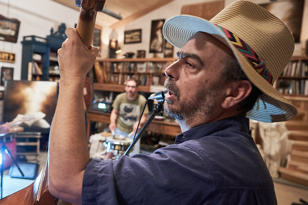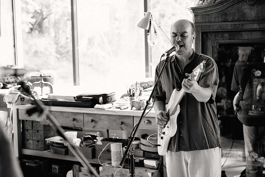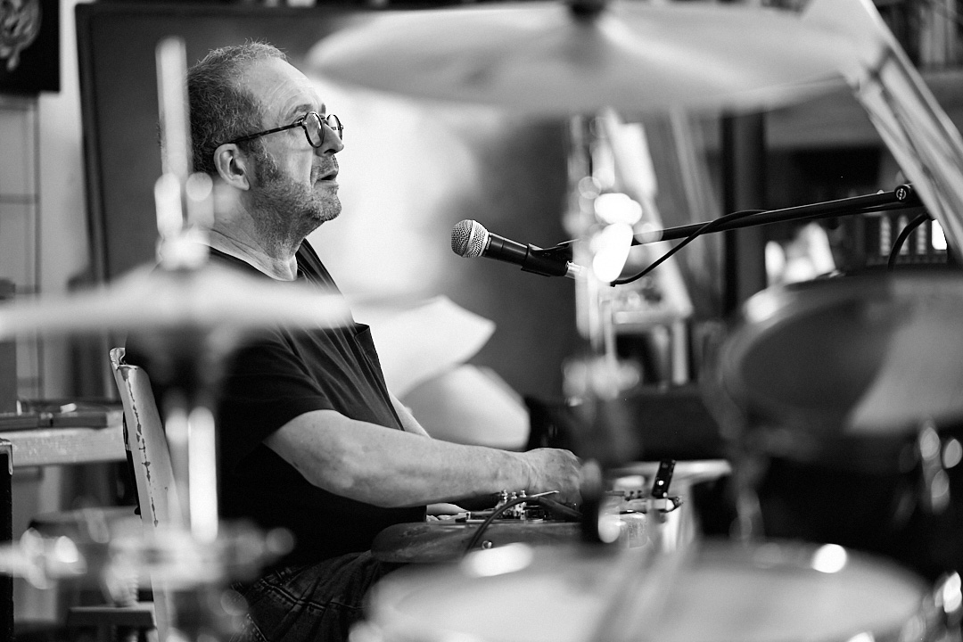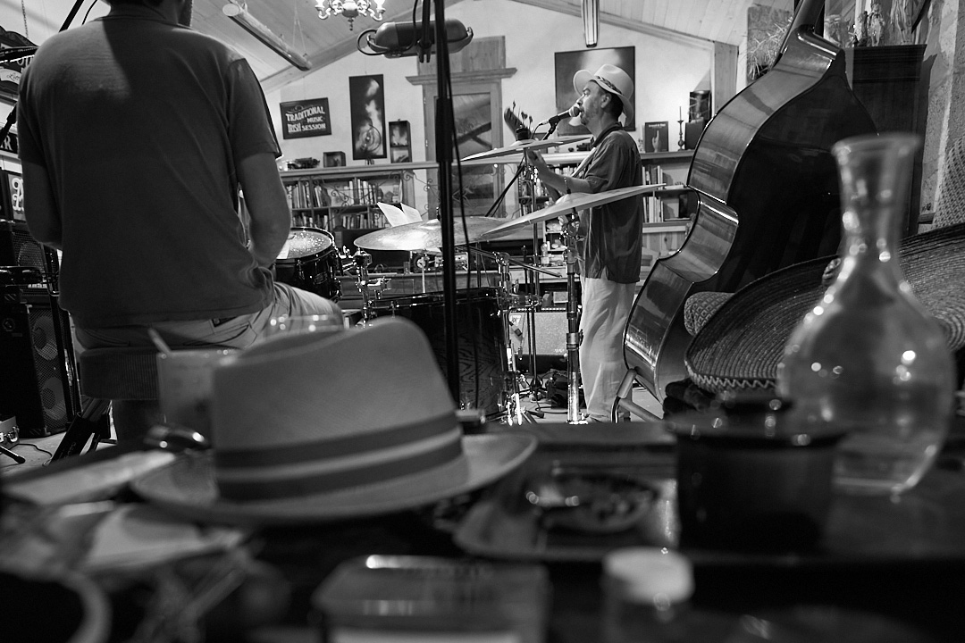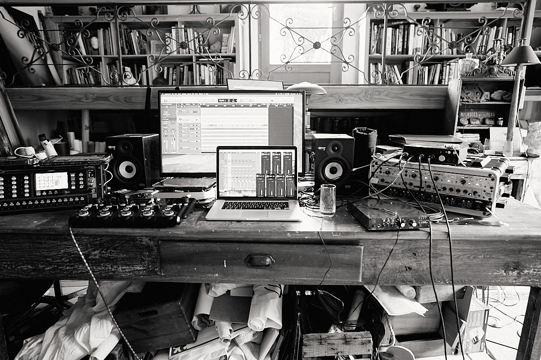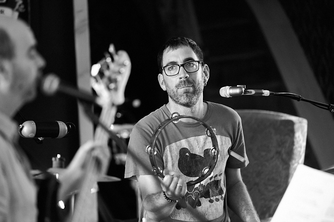 Pour Café Sofia Presents: the iUteurki’Verse, nous nous sommes installés dans l’atelier de peinture de Geno, transformé en studio d’enregistrement multipiste. Pendant quatre jours, nous avons répété trois sets complets pour le spectacle. Mon ami James Foster, photographe originaire de Chicago, est venu documenter l’aventure. Ce sont ses photos qui composent les galeries présentées ici.