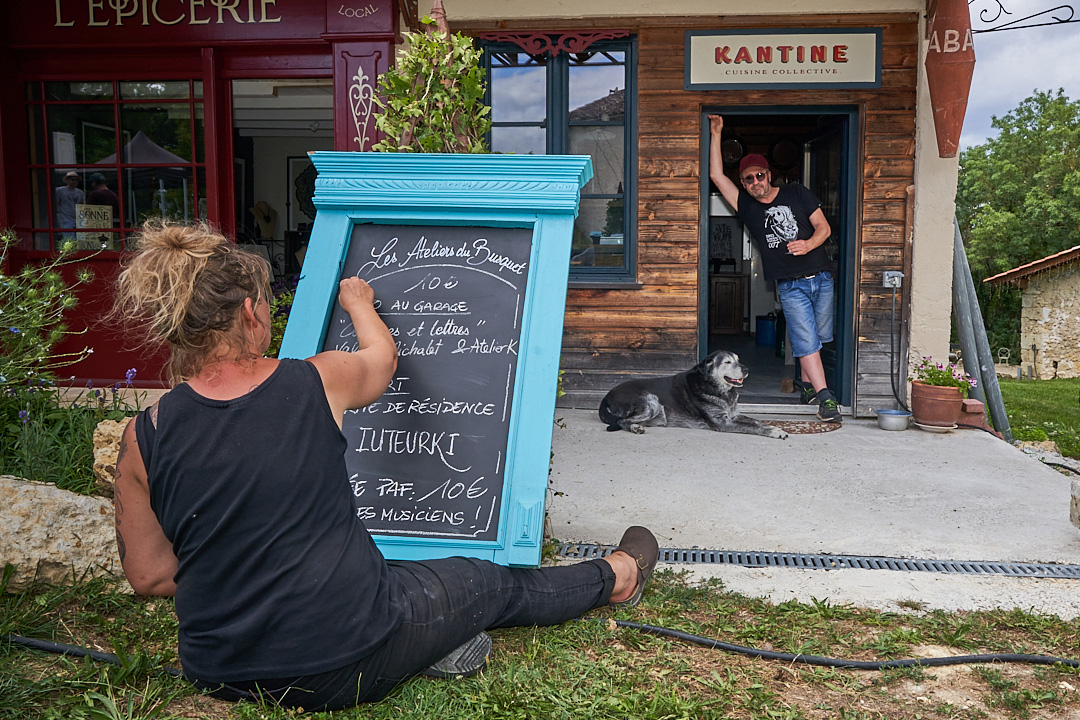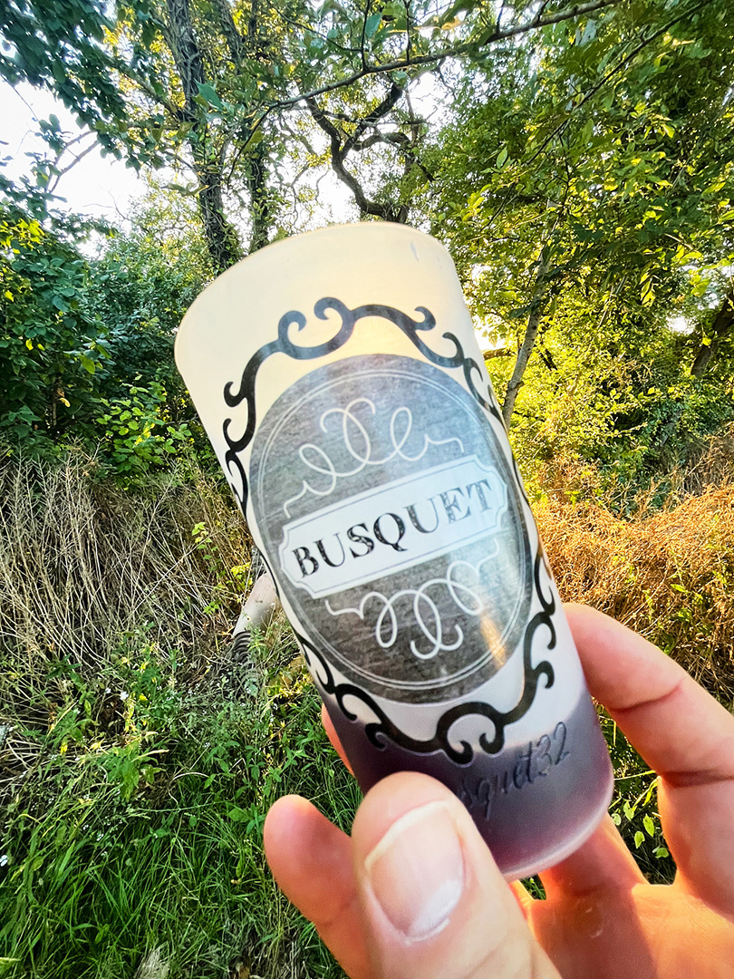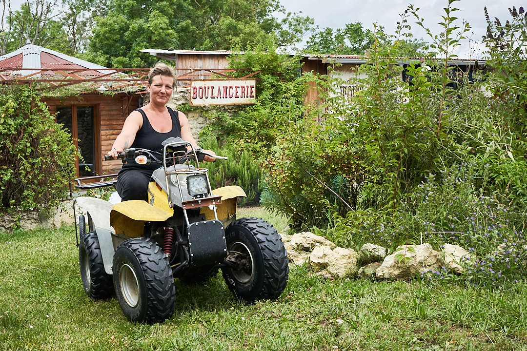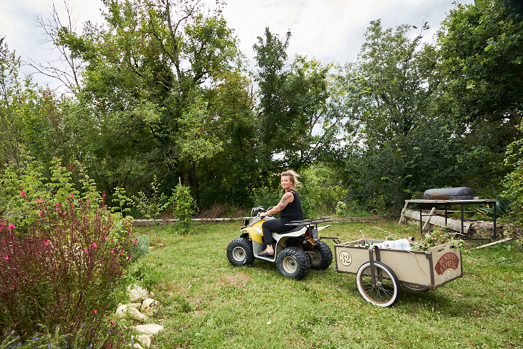 Geno est bien connue en France pour son travail d’enseigniste peintre à la main—un art qui précède probablement l’invention de l’imprimerie. Avec Pepone, elle a construit Busquet de toutes pièces. À leur arrivée, ce n’était qu’une ferme délabrée avec quelques granges en ruine, typique des vieilles propriétés du Gers que les familles préfèrent vendre plutôt que de rénover.