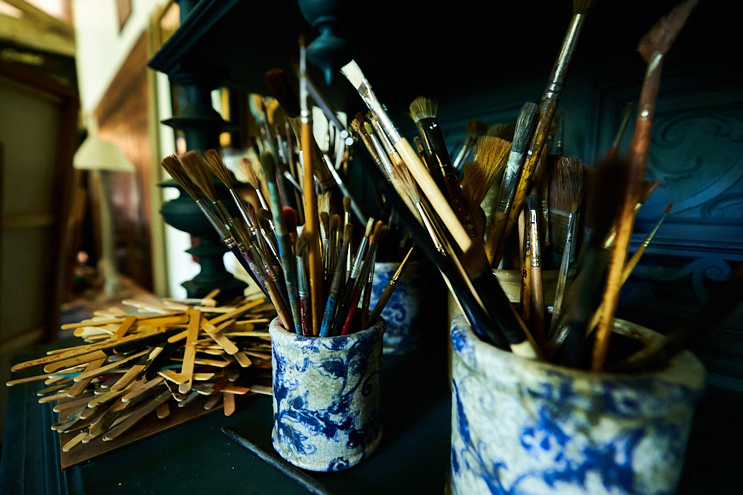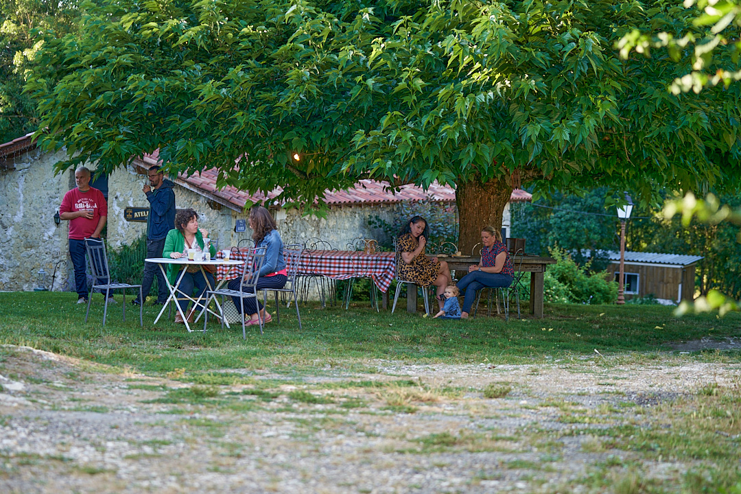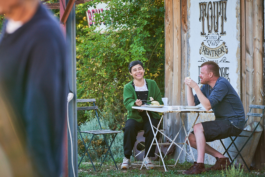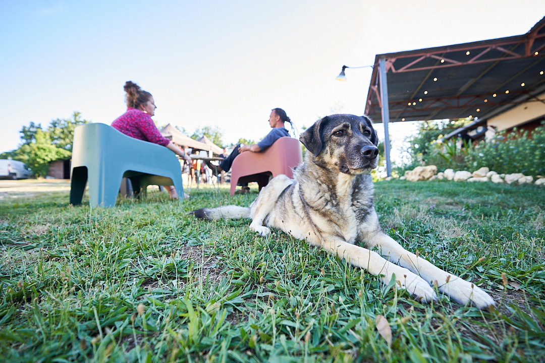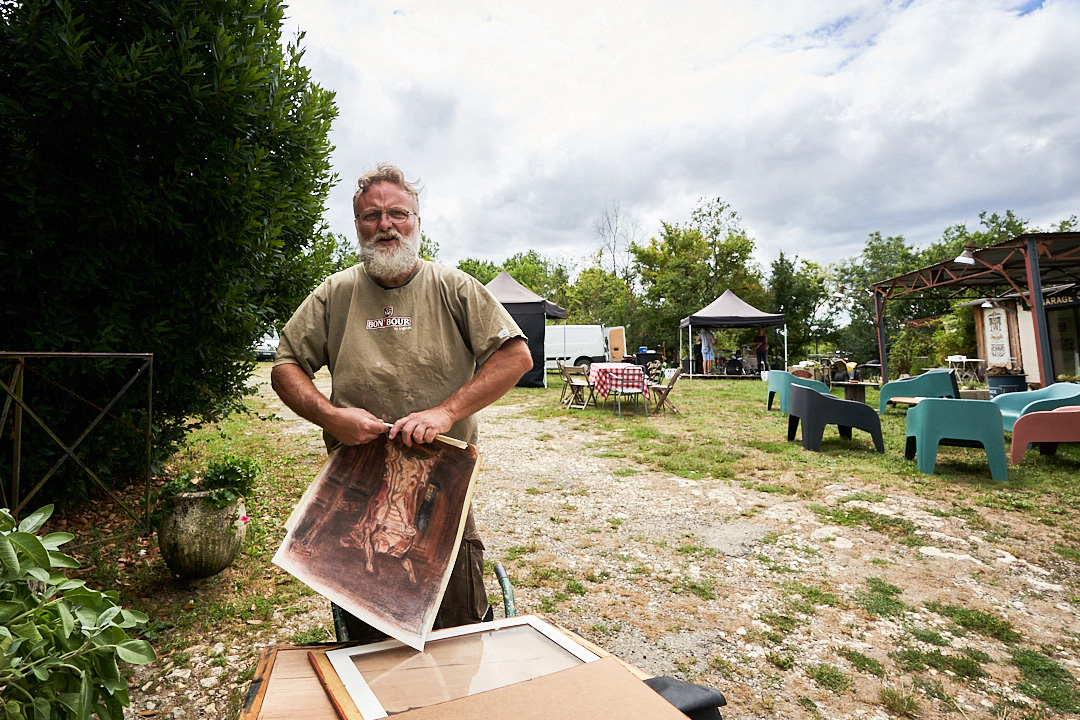 Geno est bien connue en France pour son travail d’enseigniste peintre à la main—un art qui précède probablement l’invention de l’imprimerie. Avec Pepone, elle a construit Busquet de toutes pièces. À leur arrivée, ce n’était qu’une ferme délabrée avec quelques granges en ruine, typique des vieilles propriétés du Gers que les familles préfèrent vendre plutôt que de rénover.