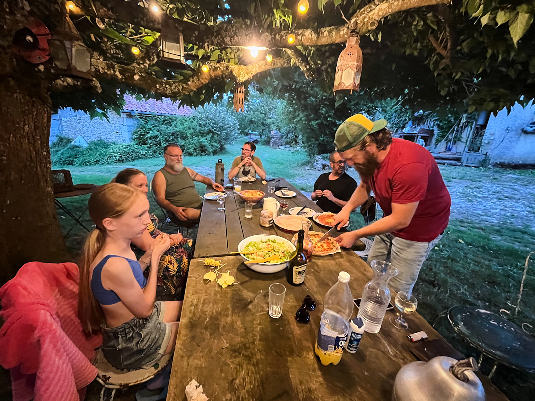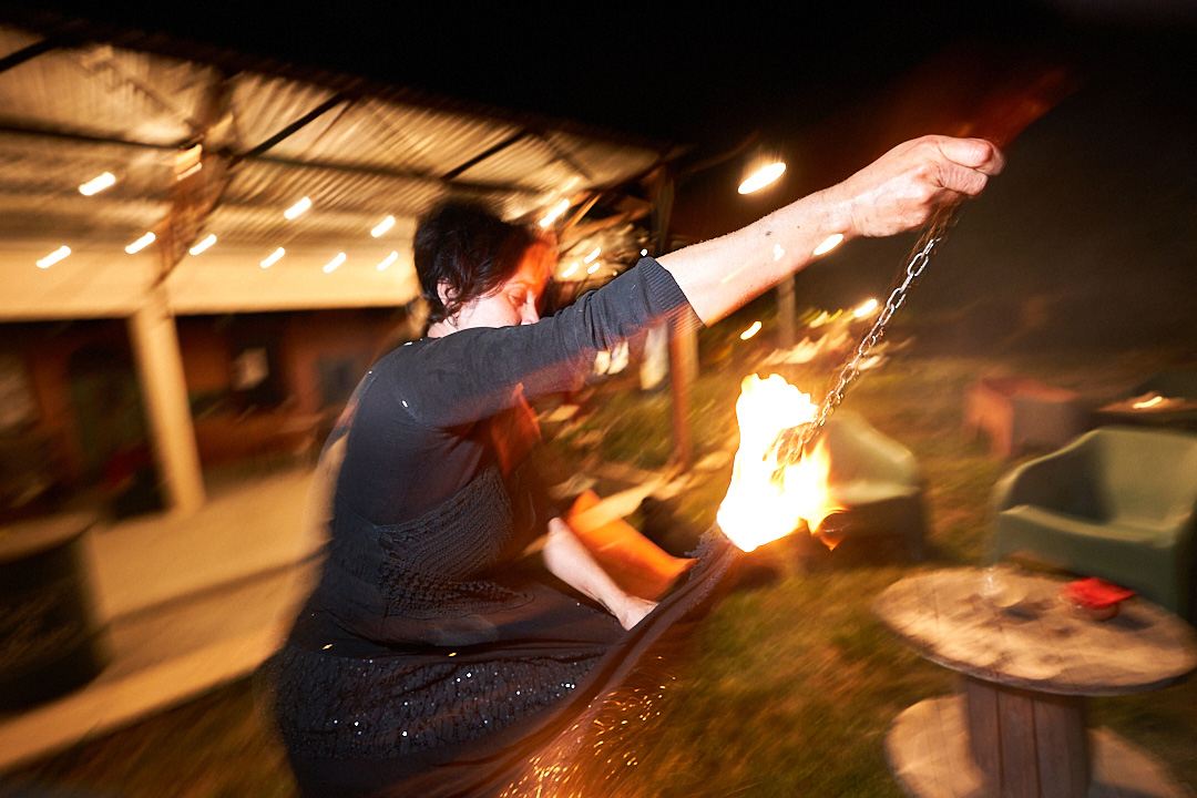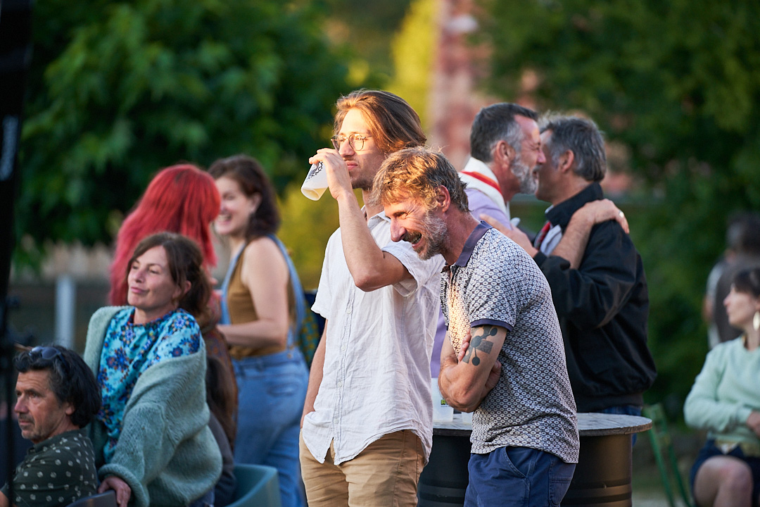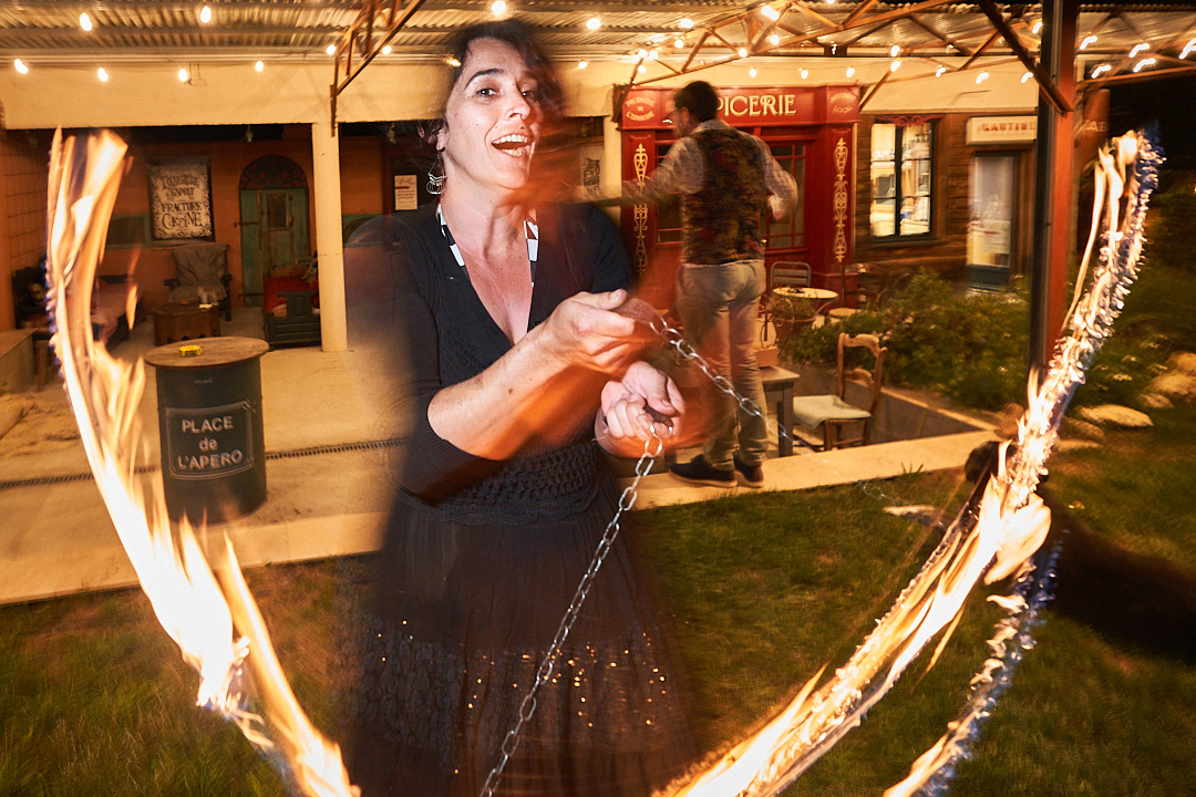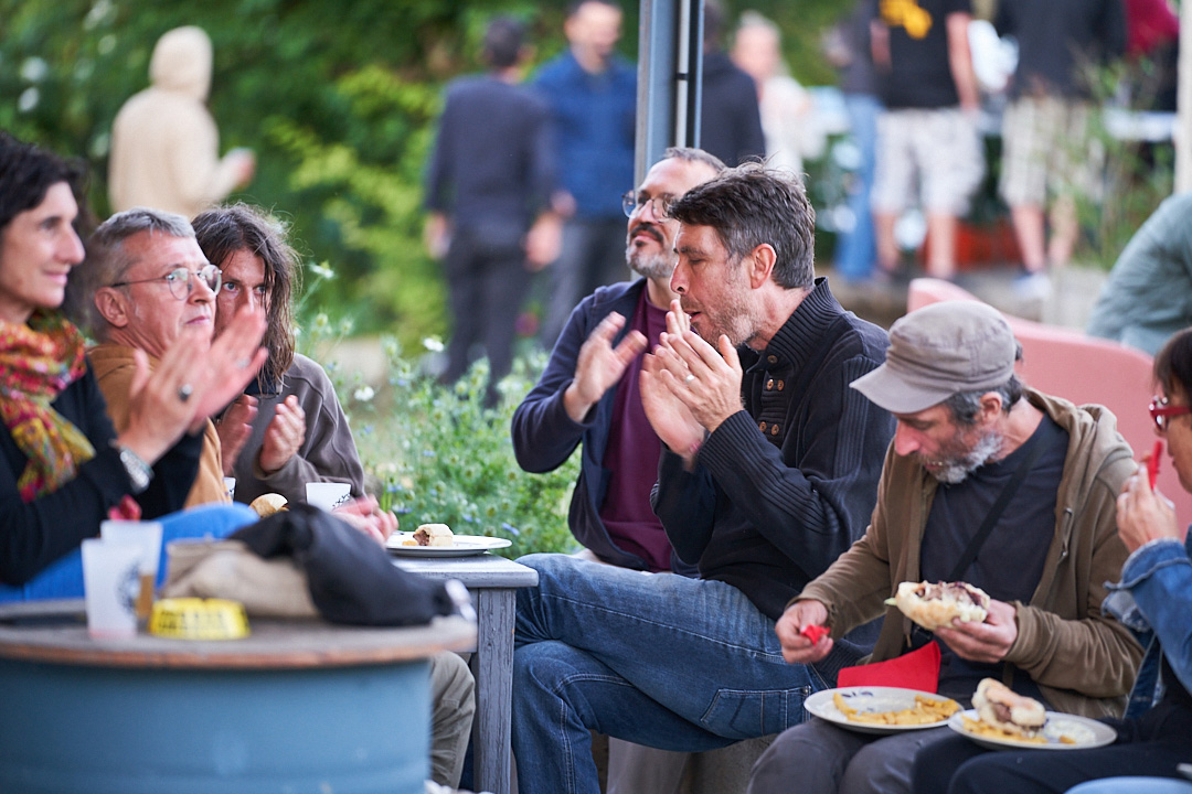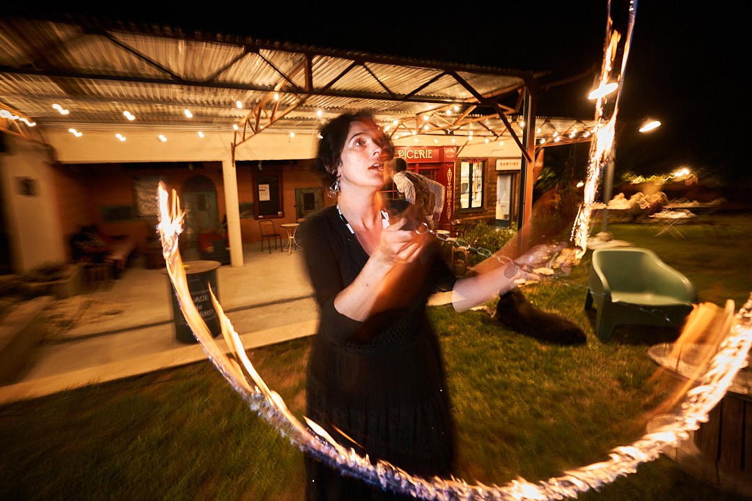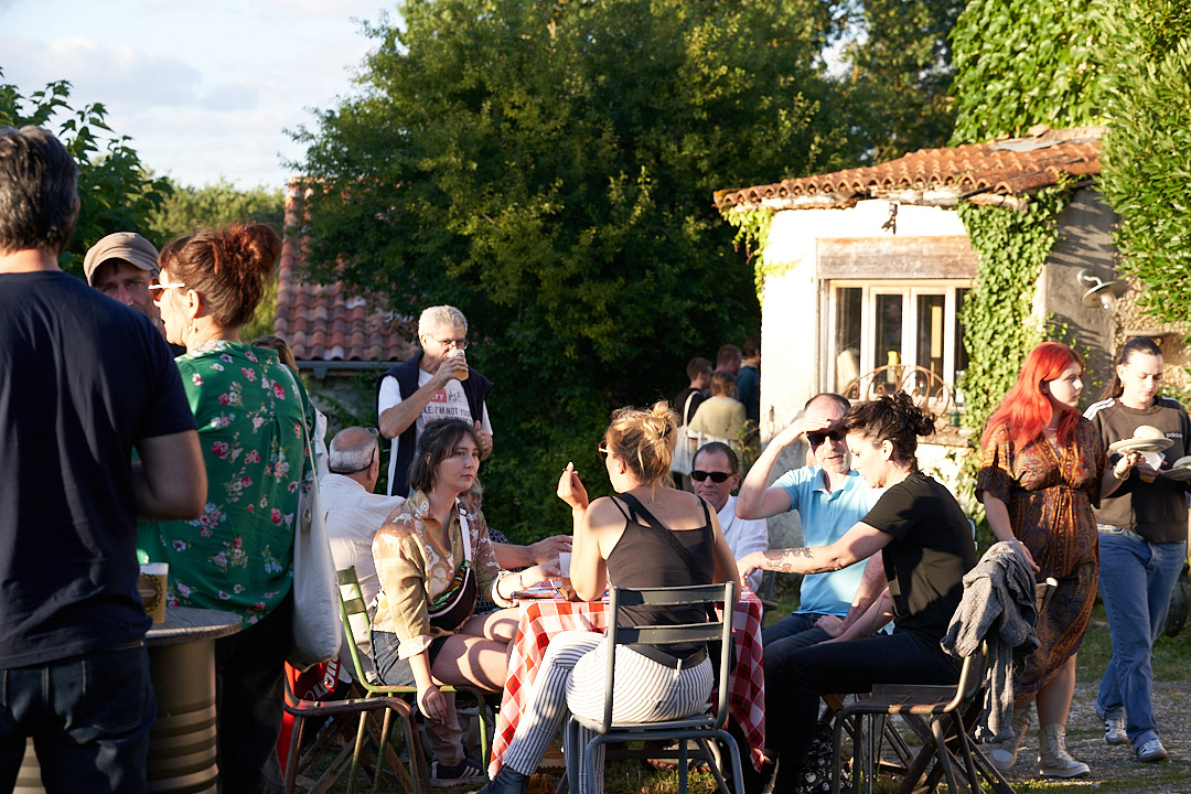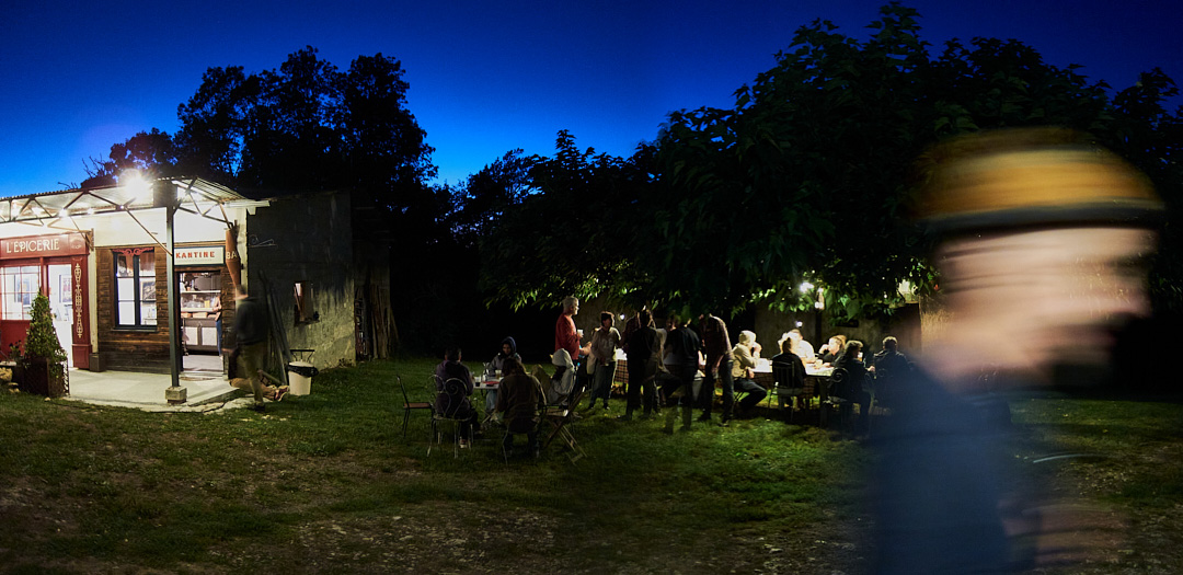 Le dernier jour de la résidence, Pepone nous a construit une scène, et la communauté locale est venue tenir le bar et la cuisine. Avec une invitation ouverte à tous, nous avons présenté l’intégralité du spectacle devant un public d’environ 150 personnes.