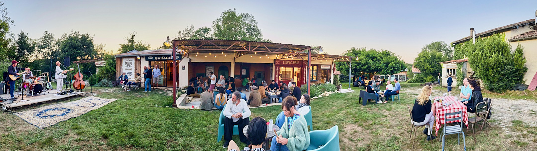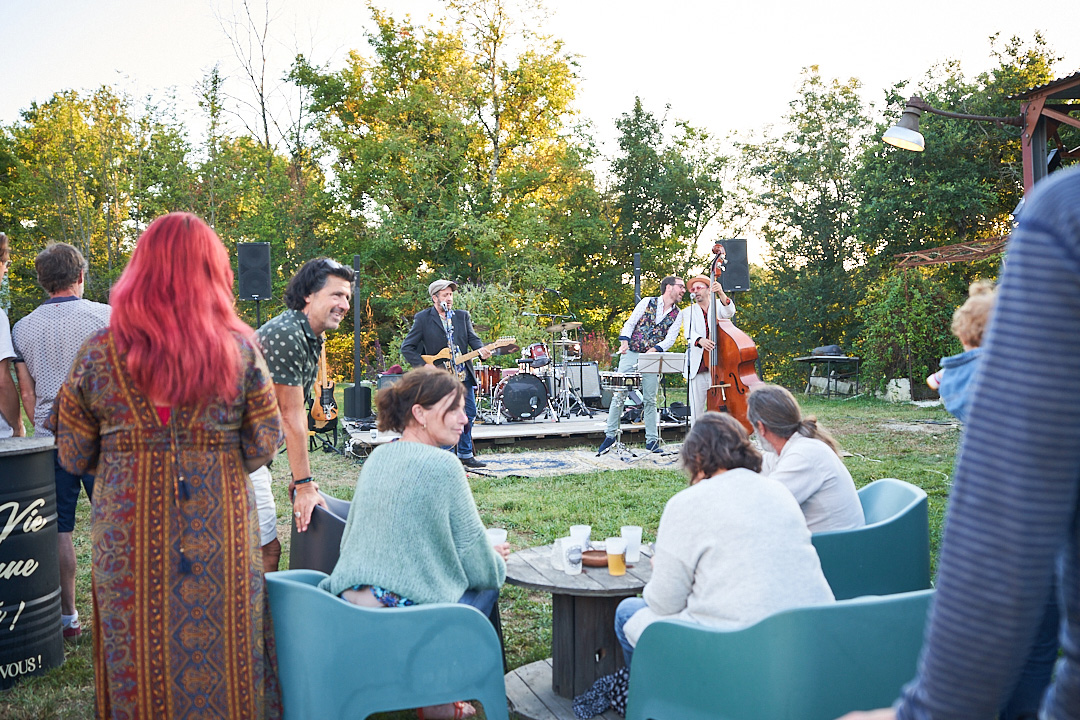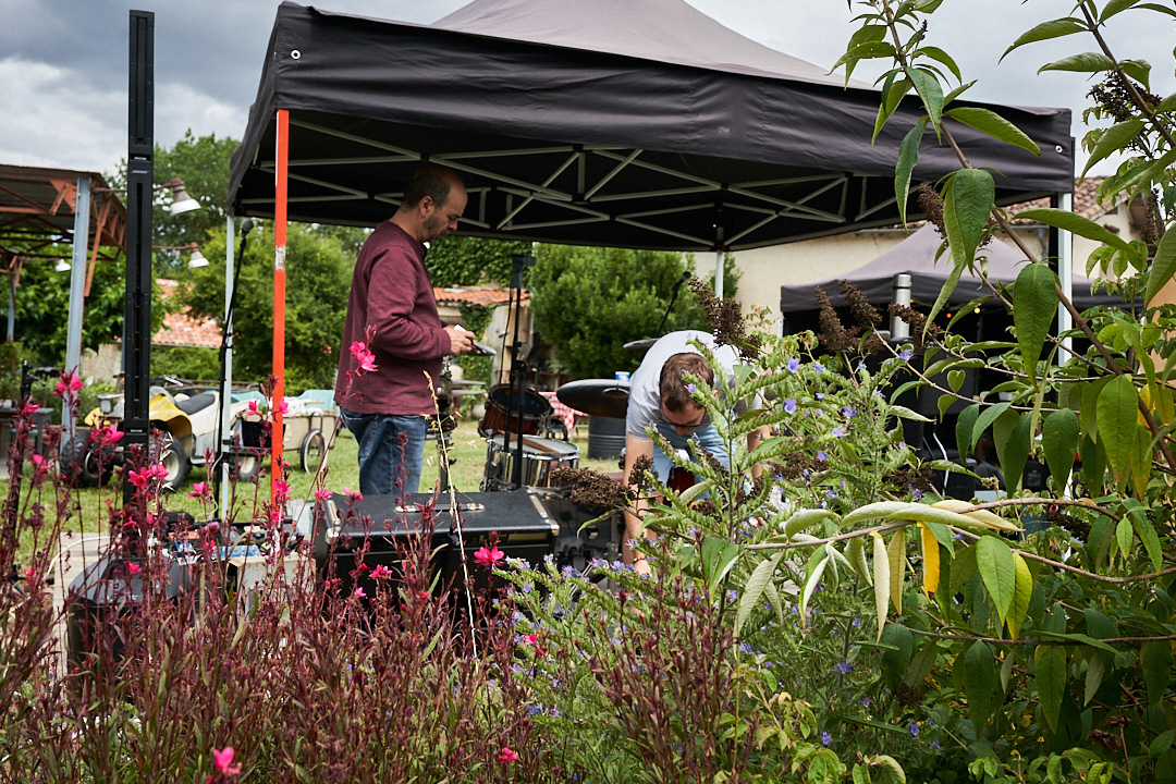 J’ai eu l’occasion de jouer à Busquet de nombreuses fois. Leurs rassemblements ressemblent davantage à de petits festivals, avec des structures construites spécialement, des caravanes rénovées et d’autres formes d’habitations singulières. L’esprit du lieu repose sur la réutilisation créative, la transformation d’objets trouvés et la collaboration communautaire. Geno accueille régulièrement des artistes en résidence et, avec Pepone, ils ont créé sur leur terrain une sorte de petite rue commerçante : un café/cuisine, des espaces d’exposition et une boutique proposant des produits artisanaux locaux.