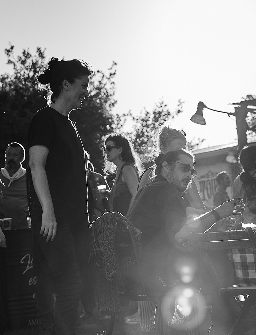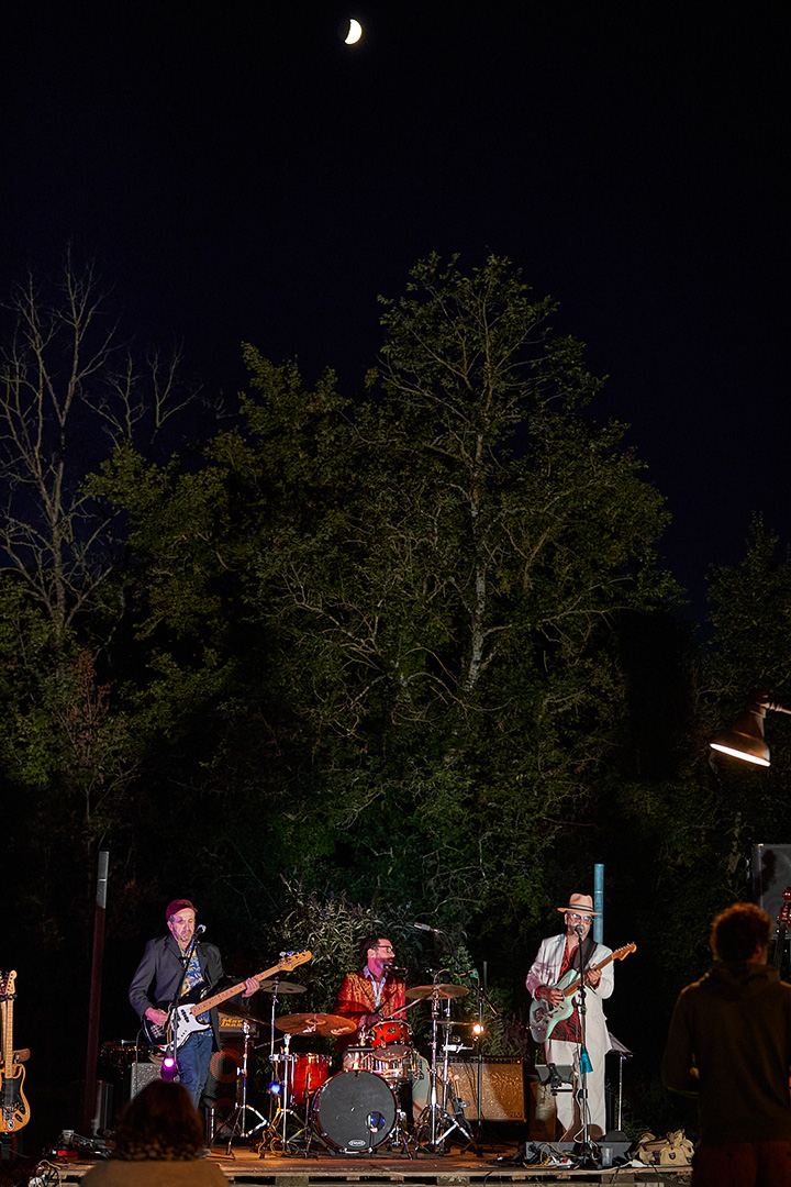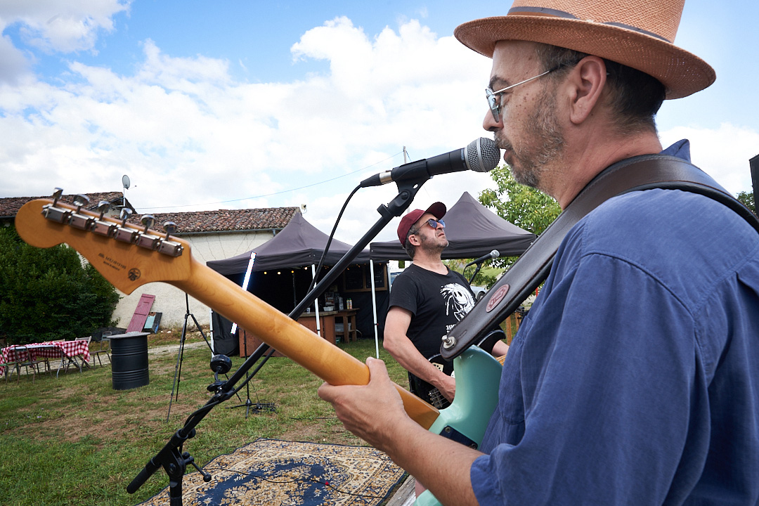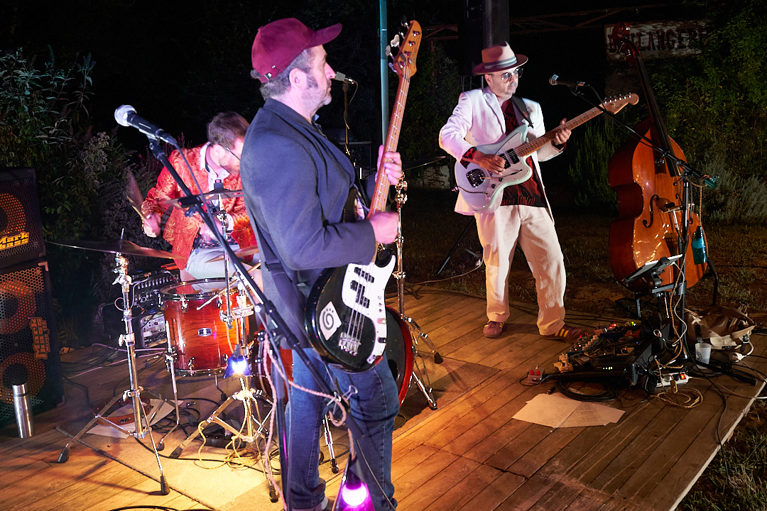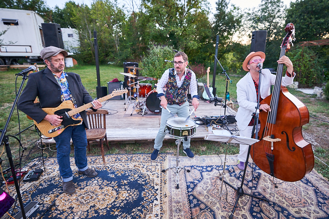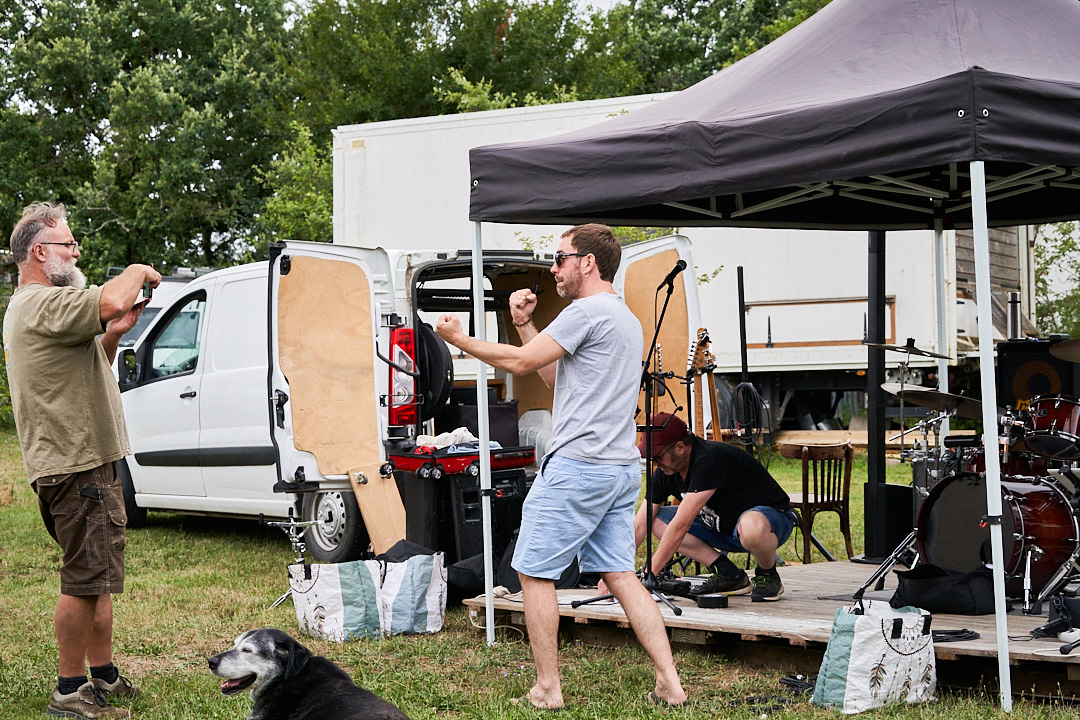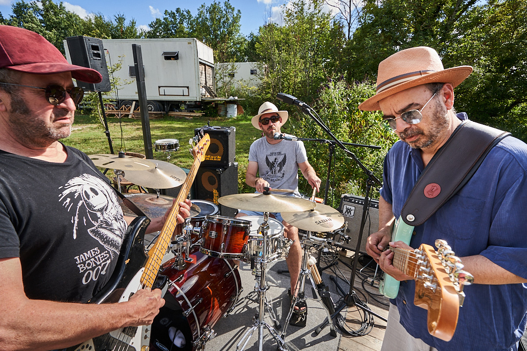Je connais Geno et Pepone depuis 2012 ou 2013. J’ai rencontré Geno pour la première fois lorsqu’elle a invité Tildon Krautz à jouer pour le 40ᵉ anniversaire de Pepone. Nous avons joué sur une grande remorque de foin, entourés de caravanes, d’anciens bus scolaires aménagés et de toutes sortes d’habitations de fortune.