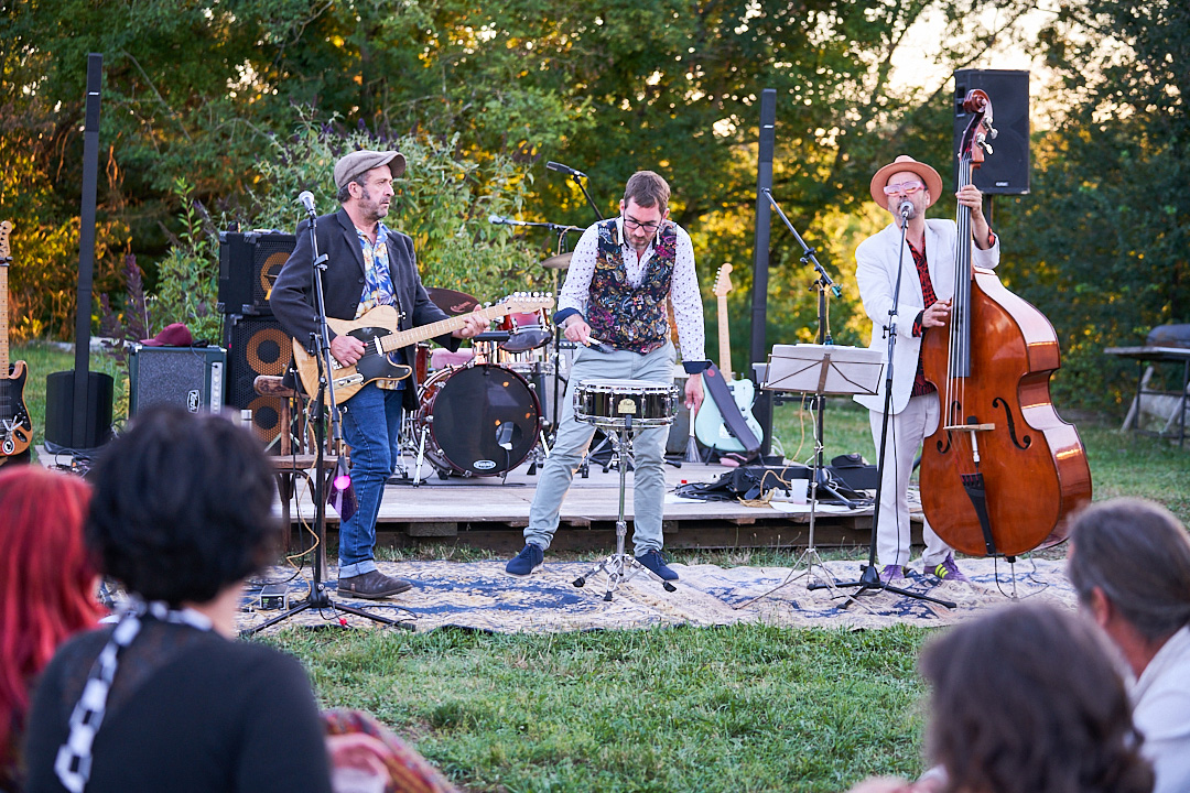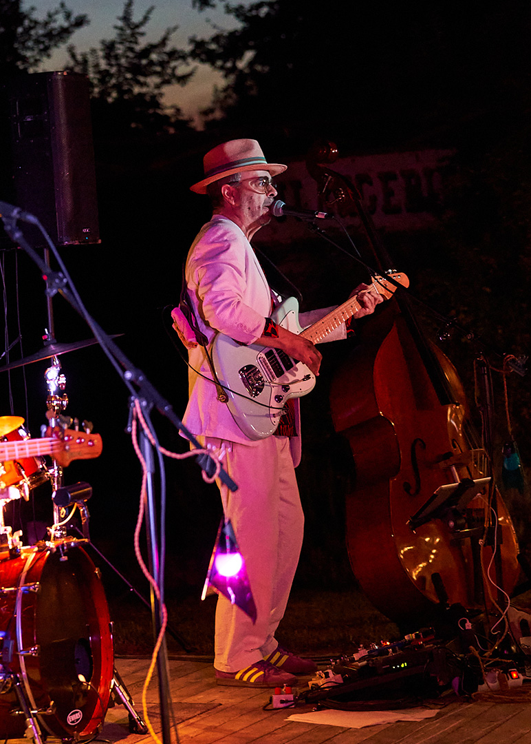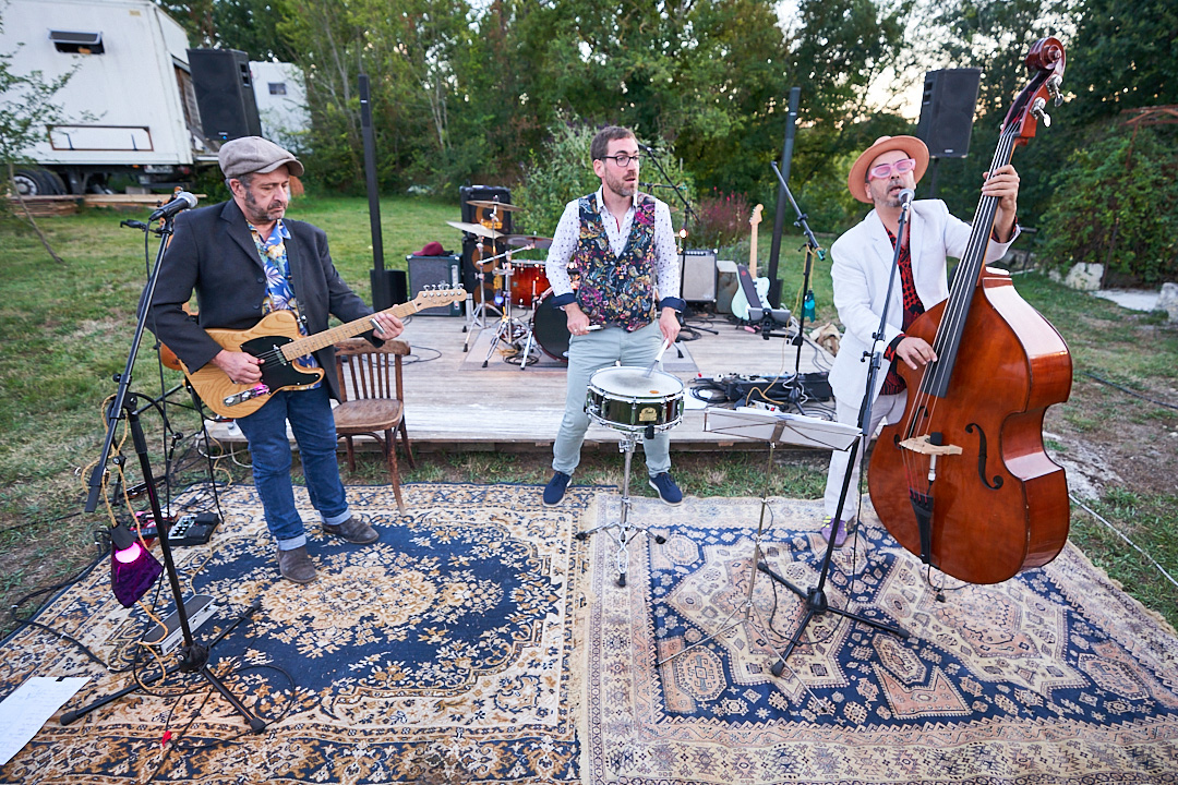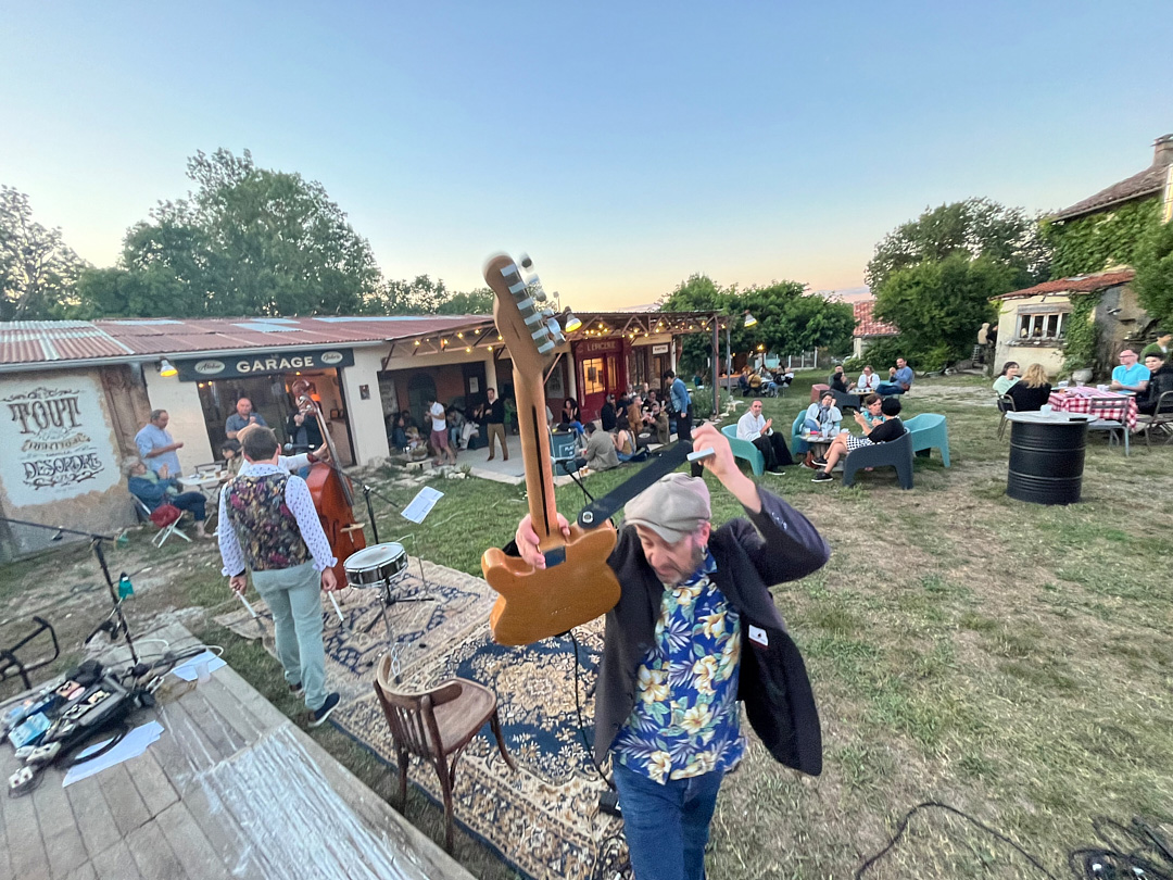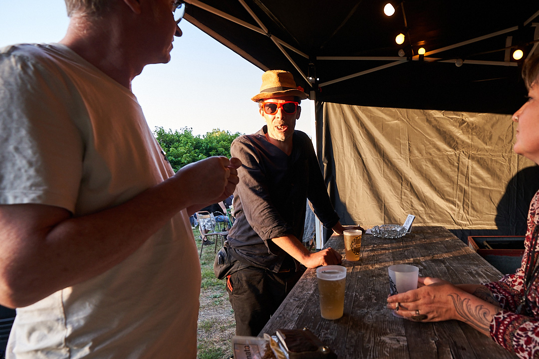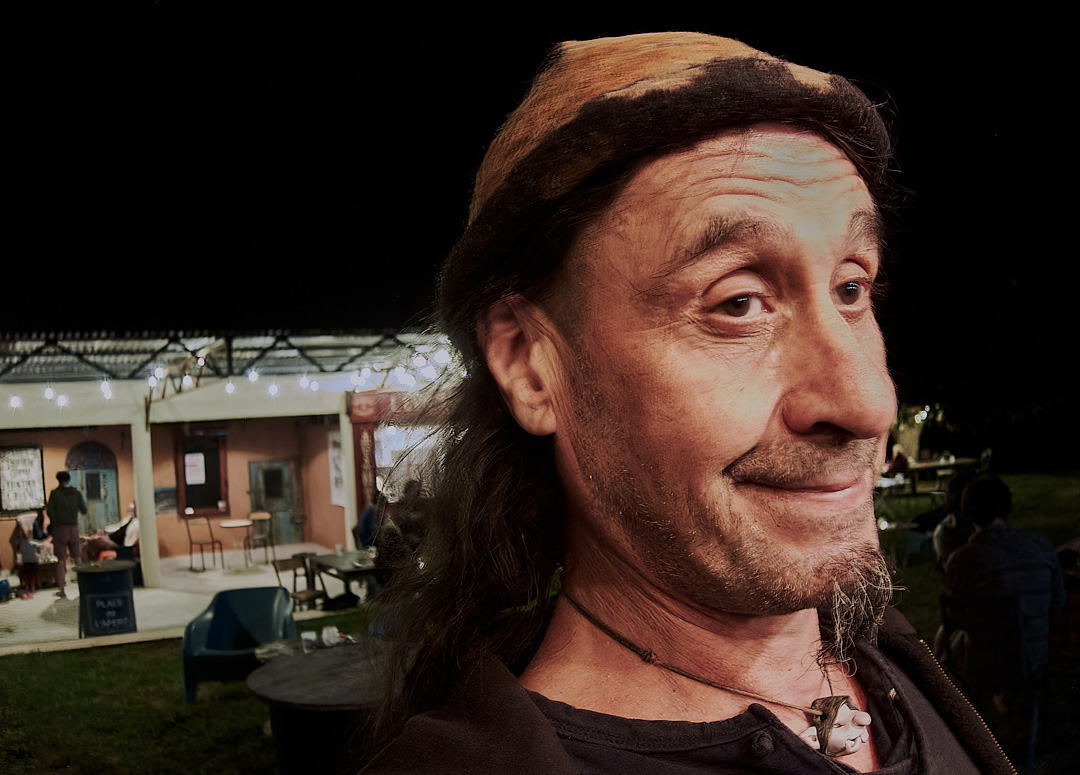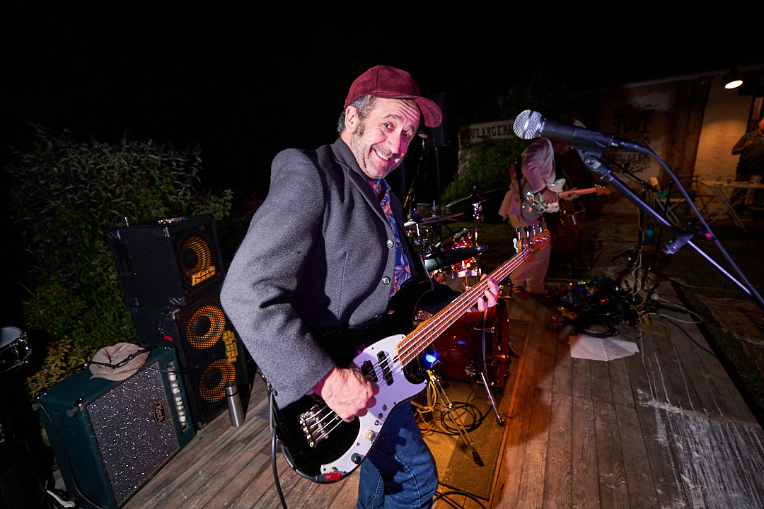 Je connais Geno et Pepone depuis 2012 ou 2013. J’ai rencontré Geno pour la première fois lorsqu’elle a invité Tildon Krautz à jouer pour le 40ᵉ anniversaire de Pepone. Nous avons joué sur une grande remorque de foin, entourés de caravanes, d’anciens bus scolaires aménagés et de toutes sortes d’habitations de fortune.