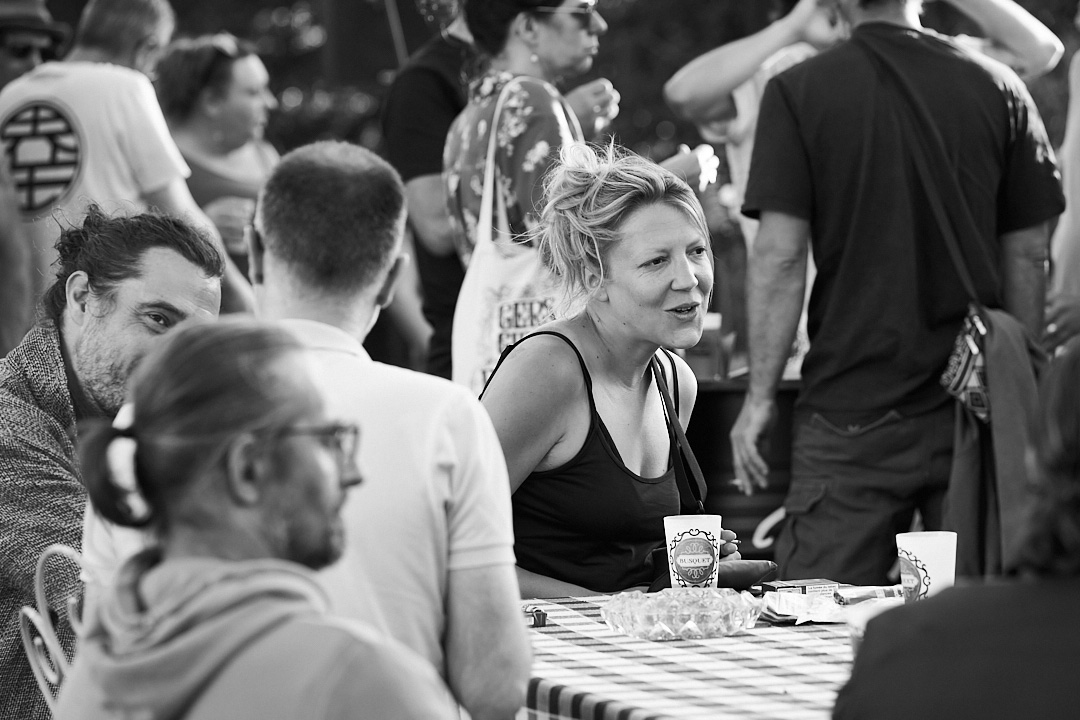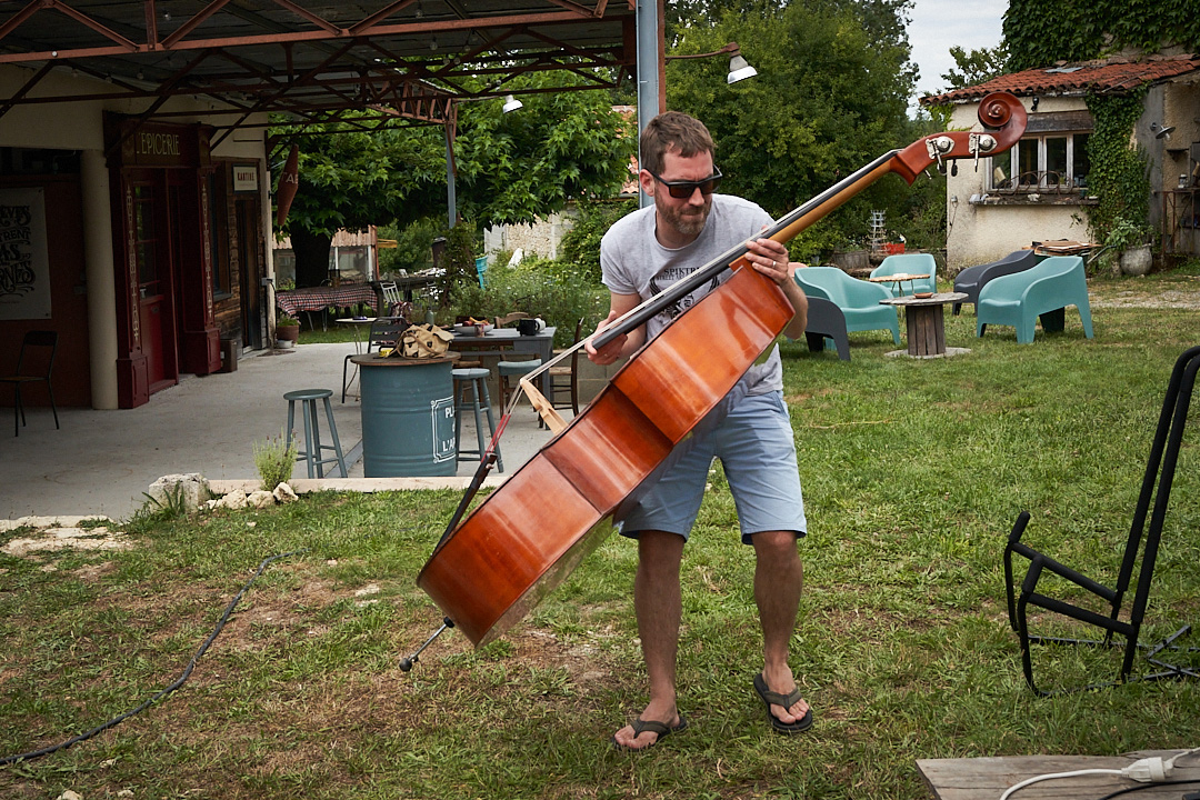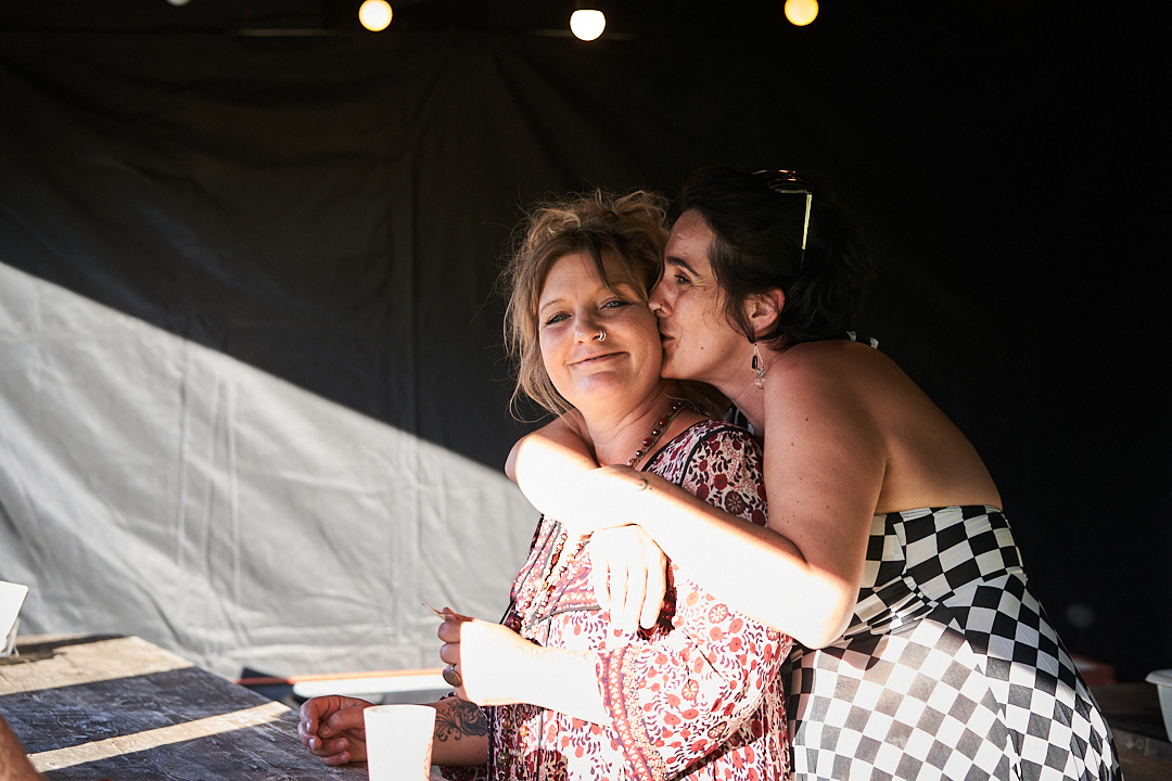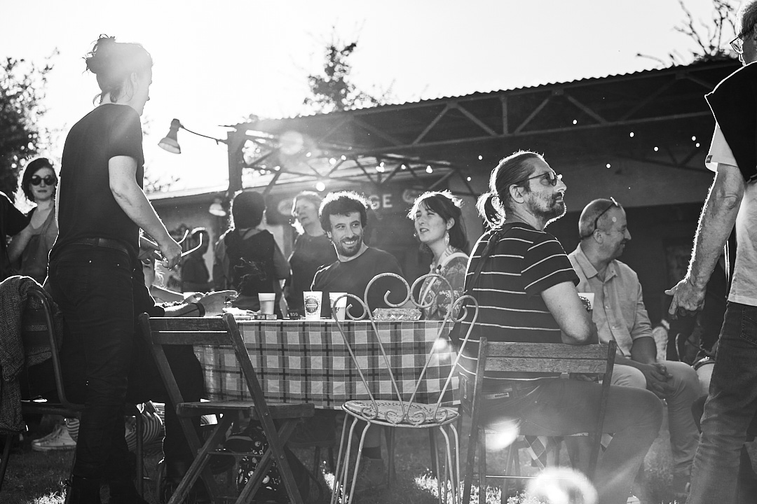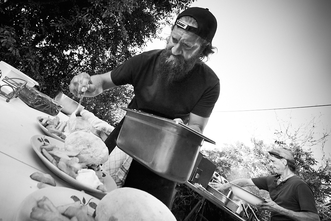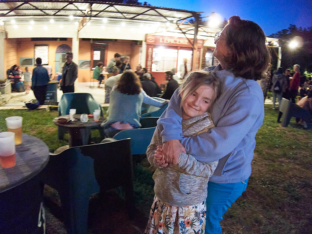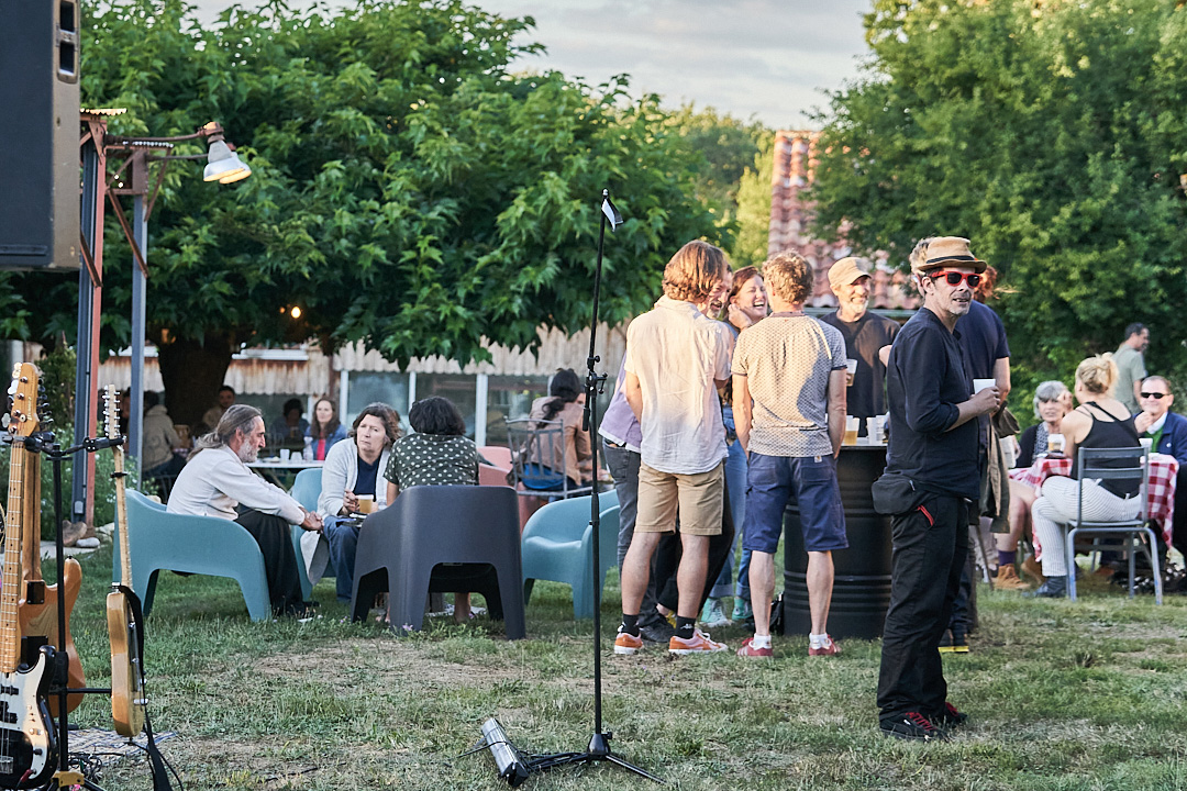 Je connais Geno et Pepone depuis 2012 ou 2013. J’ai rencontré Geno pour la première fois lorsqu’elle a invité Tildon Krautz à jouer pour le 40ᵉ anniversaire de Pepone. Nous avons joué sur une grande remorque de foin, entourés de caravanes, d’anciens bus scolaires aménagés et de toutes sortes d’habitations de fortune.