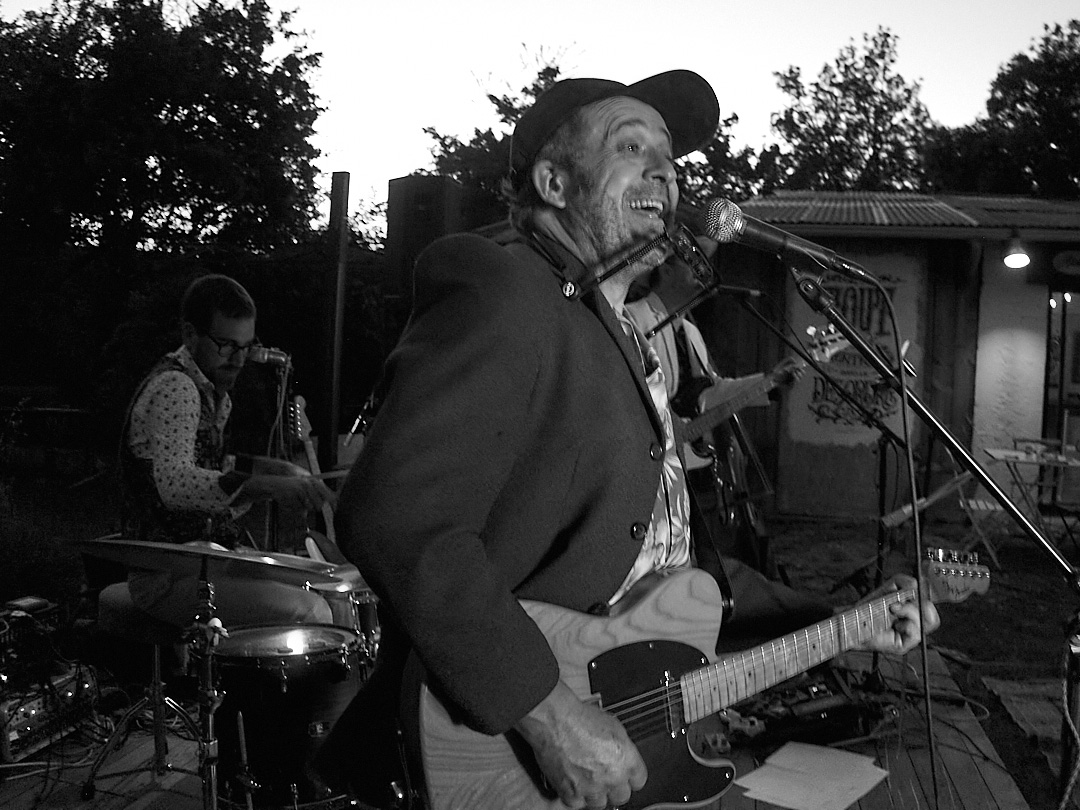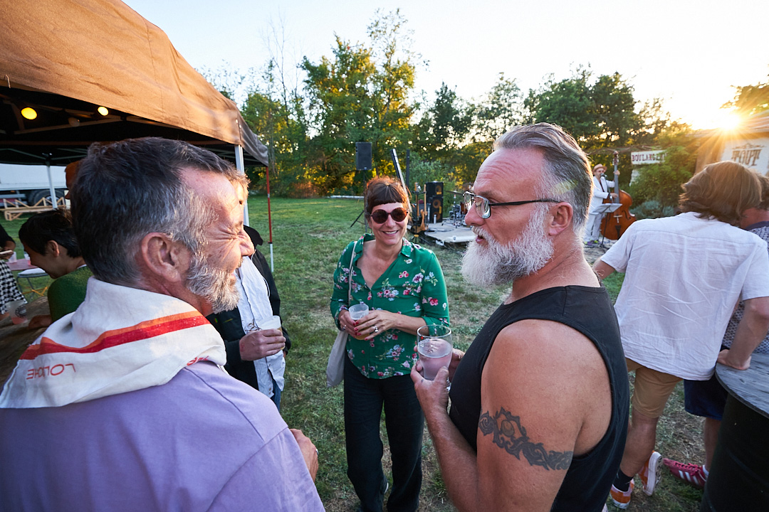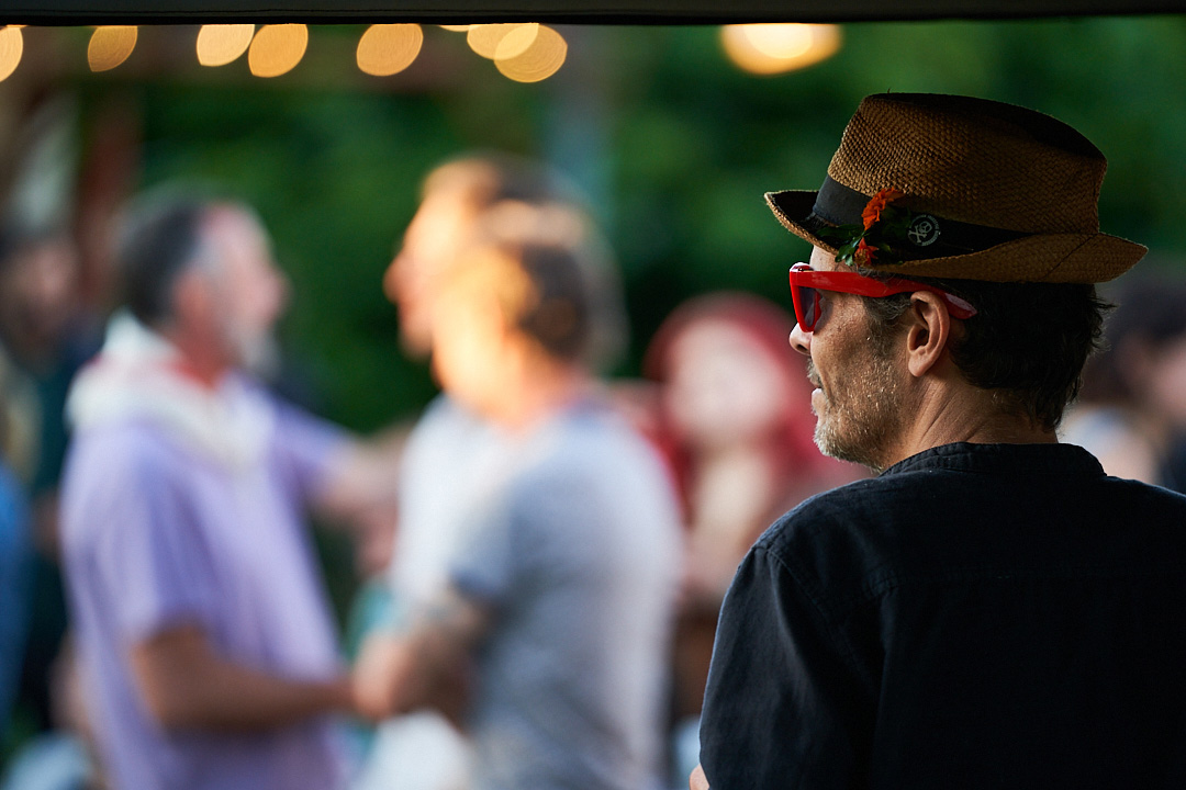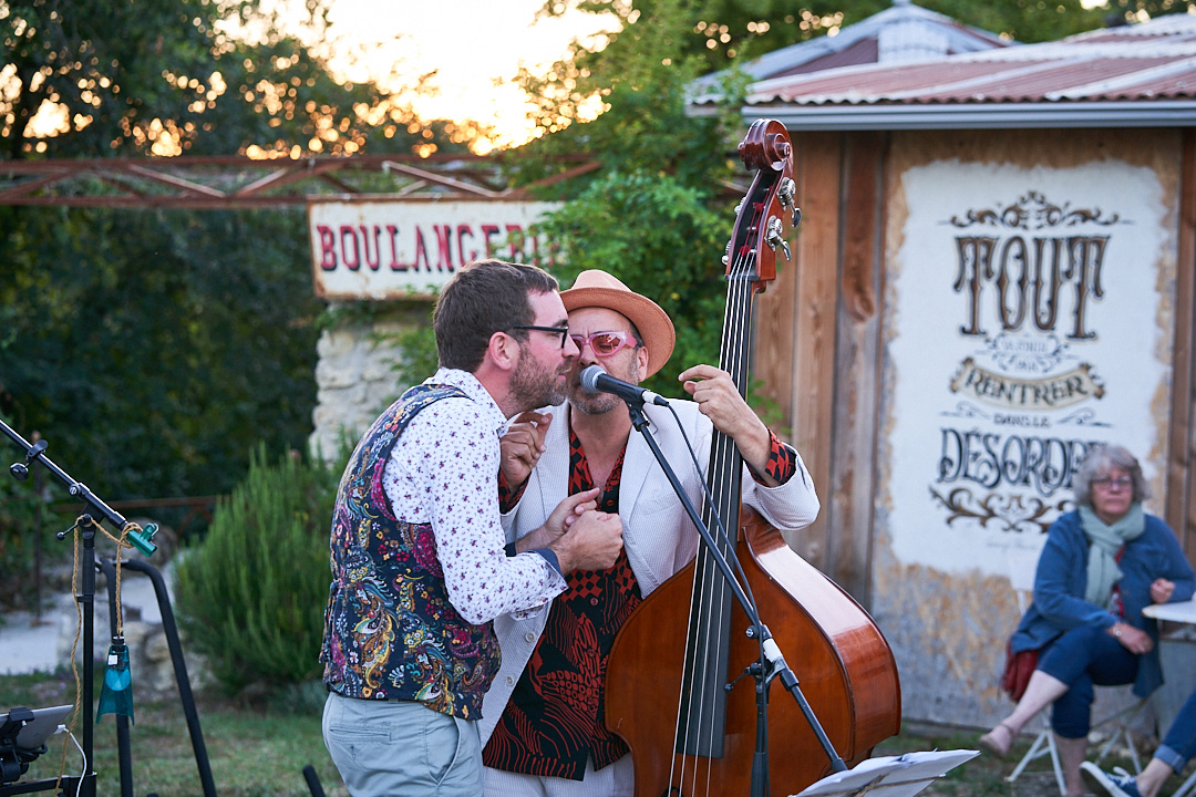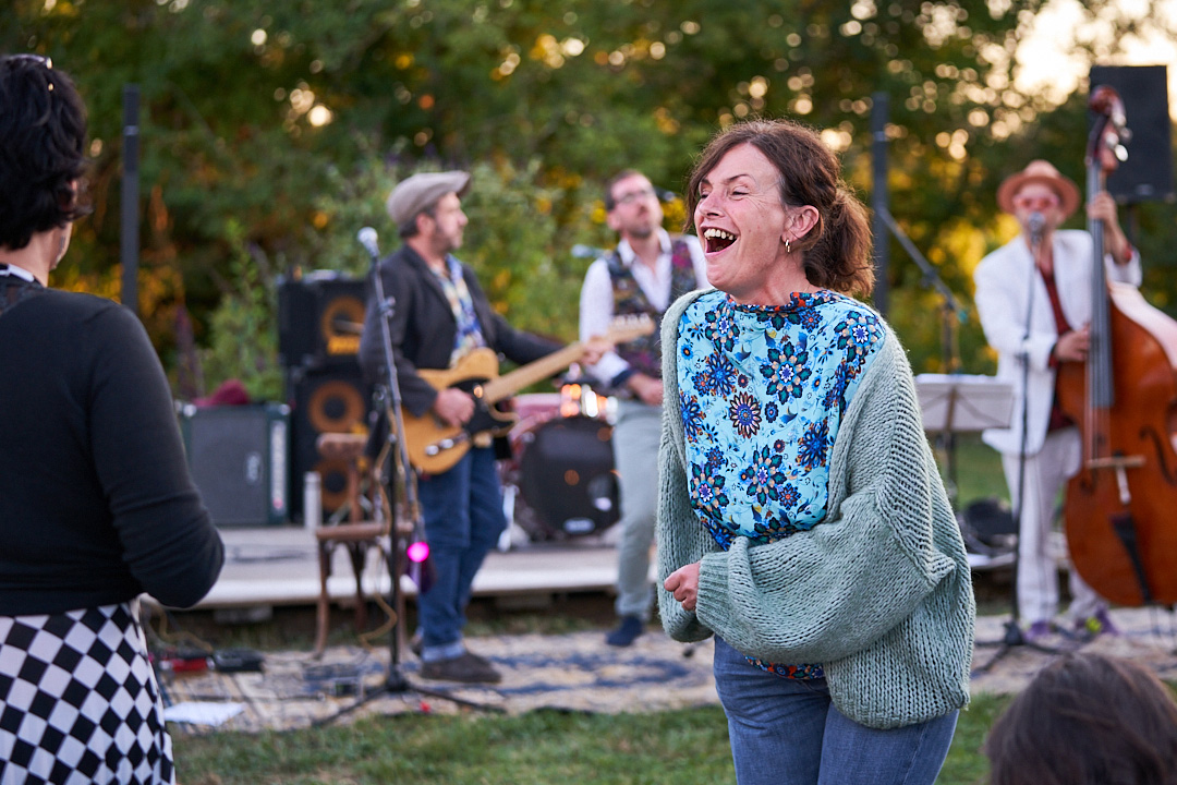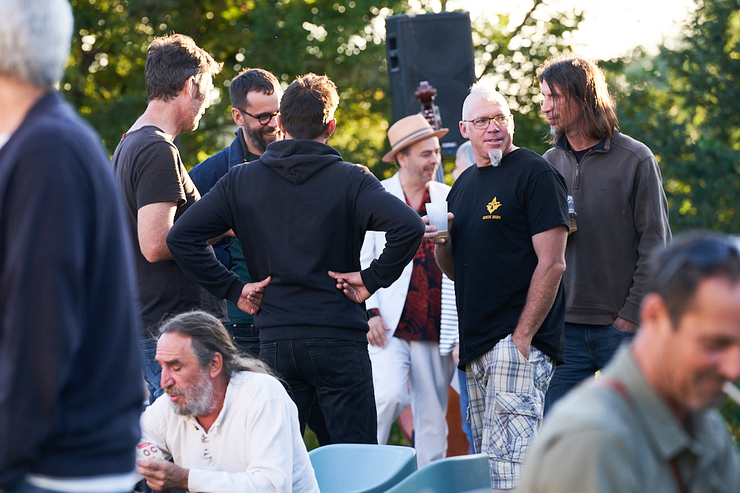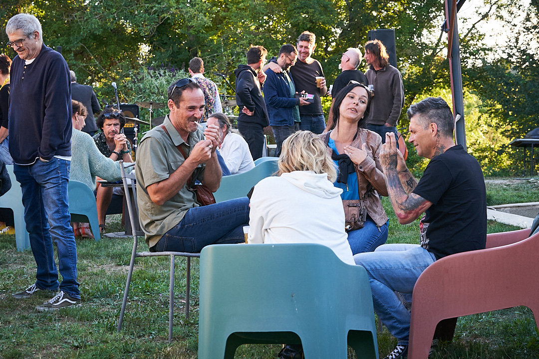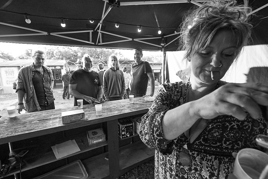 Je connais Geno et Pepone depuis 2012 ou 2013. J’ai rencontré Geno pour la première fois lorsqu’elle a invité Tildon Krautz à jouer pour le 40ᵉ anniversaire de Pepone. Nous avons joué sur une grande remorque de foin, entourés de caravanes, d’anciens bus scolaires aménagés et de toutes sortes d’habitations de fortune.