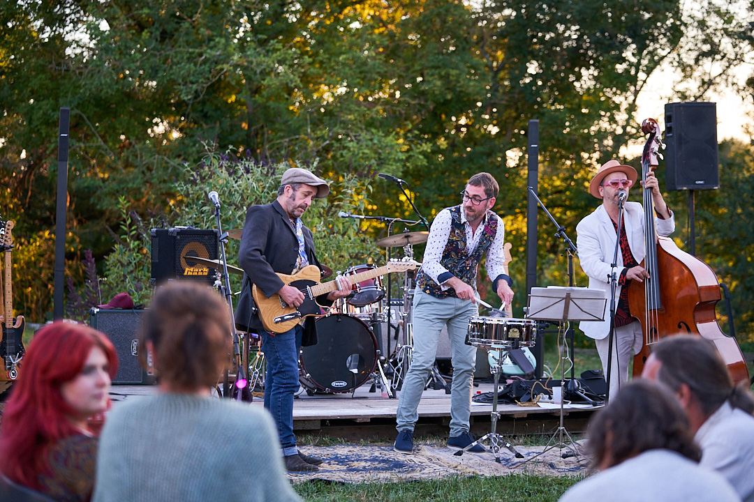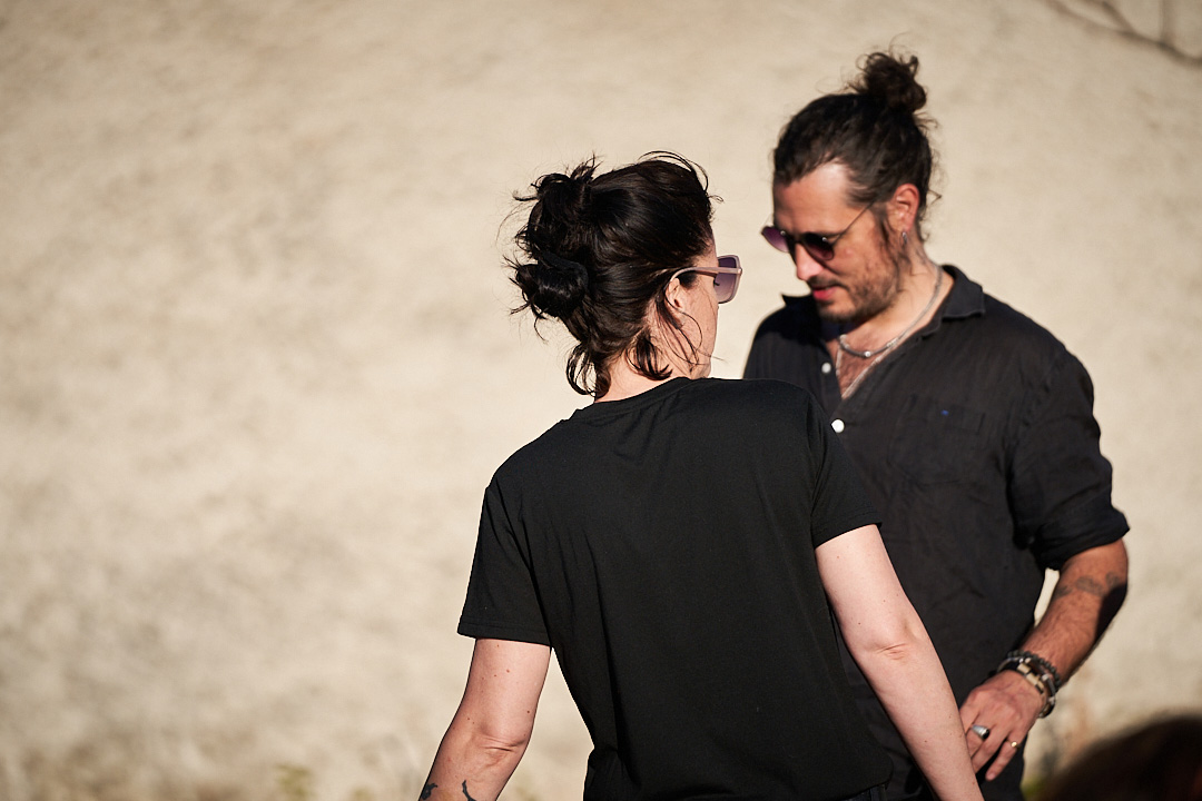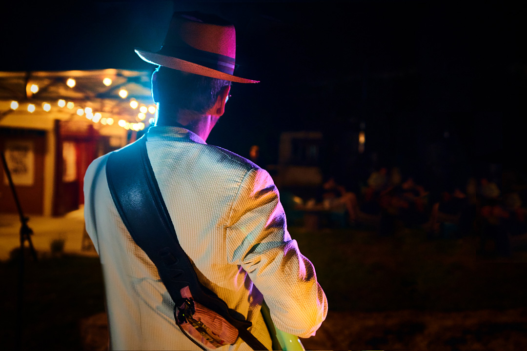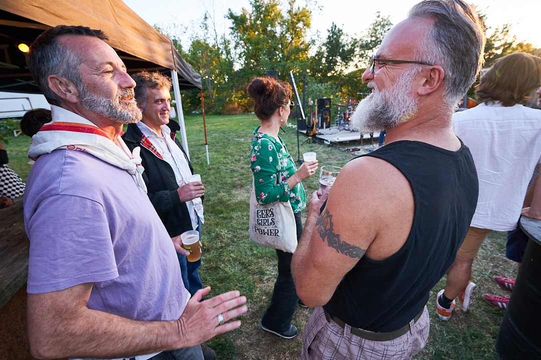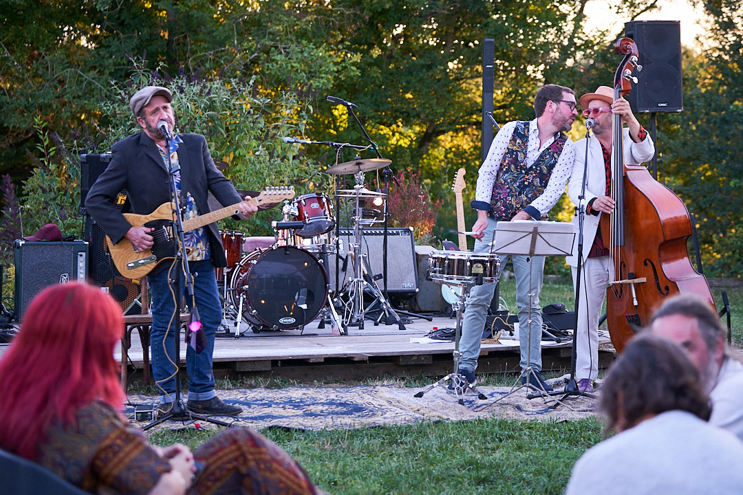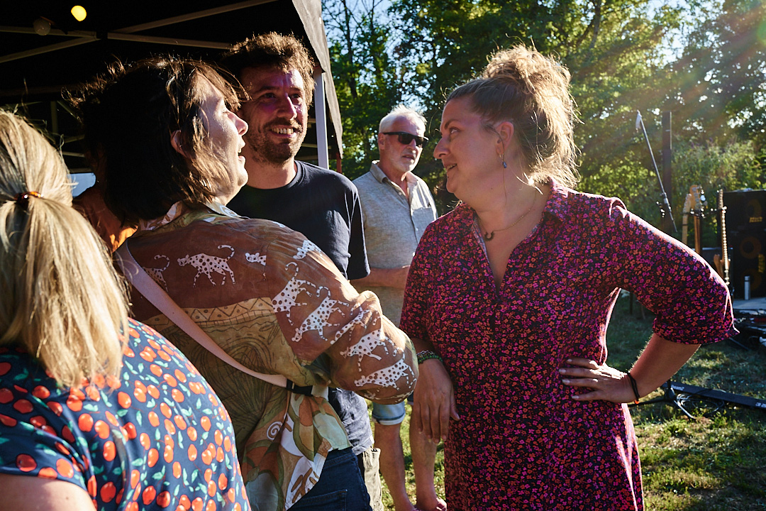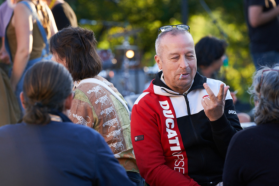 Je connais Geno et Pepone depuis 2012 ou 2013. J’ai rencontré Geno pour la première fois lorsqu’elle a invité Tildon Krautz à jouer pour le 40ᵉ anniversaire de Pepone. Nous avons joué sur une grande remorque de foin, entourés de caravanes, d’anciens bus scolaires aménagés et de toutes sortes d’habitations de fortune.